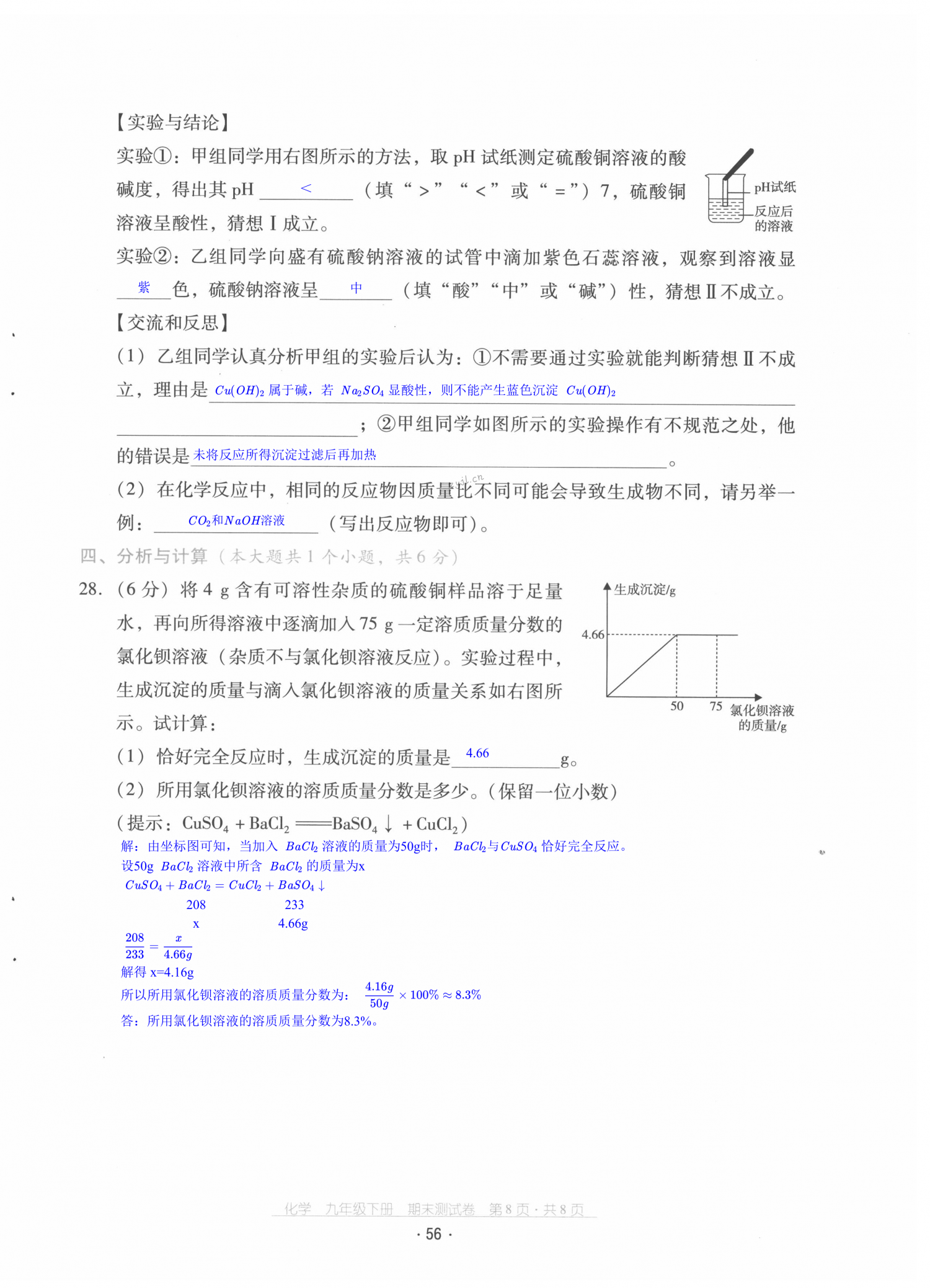 2022年云南省标准教辅优佳学案配套测试卷九年级化学下册人教版