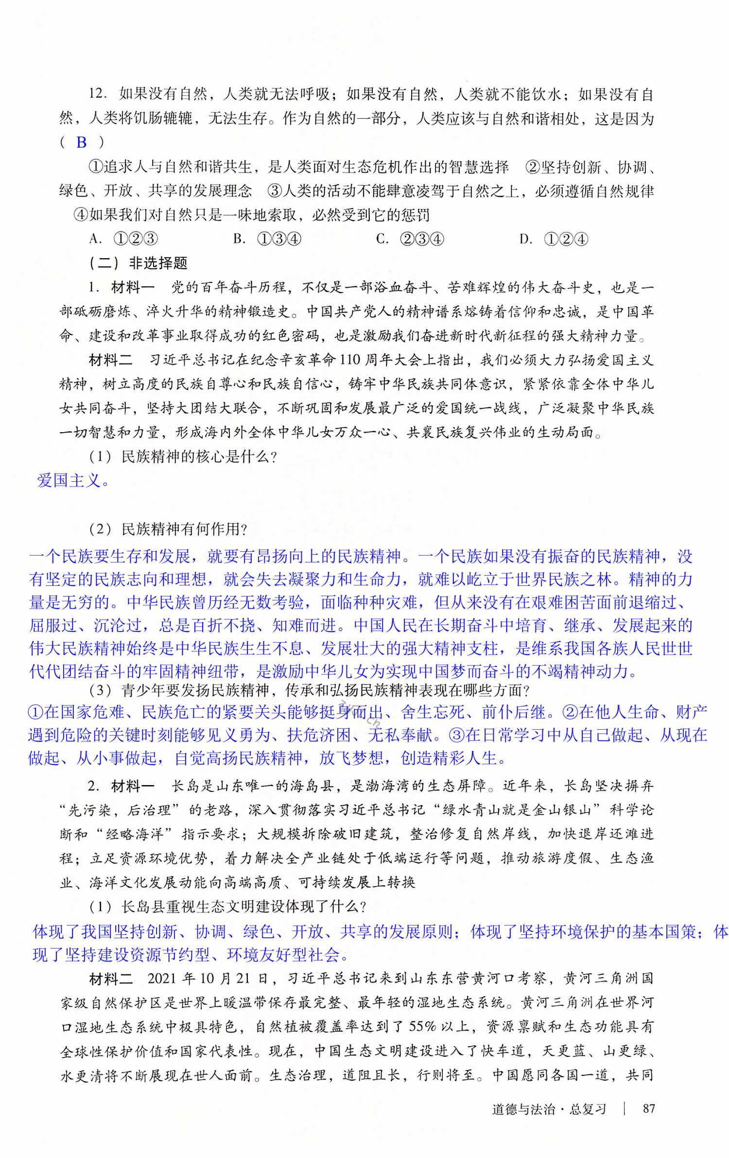 注:目前有些书本章节名称可能整理的还不是很完善,但都是按照顺序排列的,请同学们按照顺序仔细查找。练习册 2022年自主学习指导课程与测试道德与法治总复习 答案主要是用来给同学们做完题方便对答案用的,请勿直接抄袭。