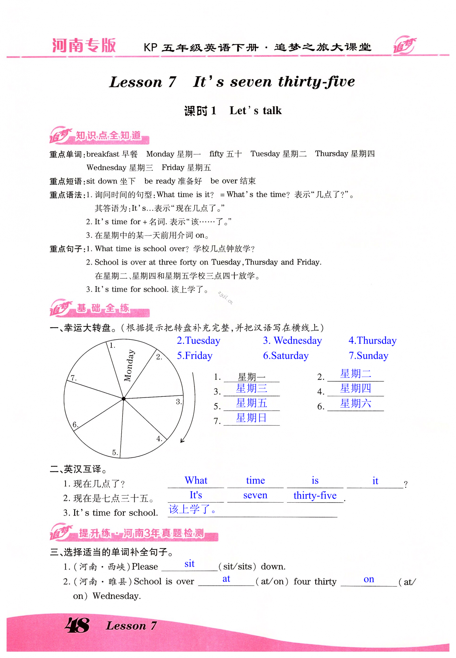 2022年追梦之旅大课堂五年级英语下册科普版河南专版