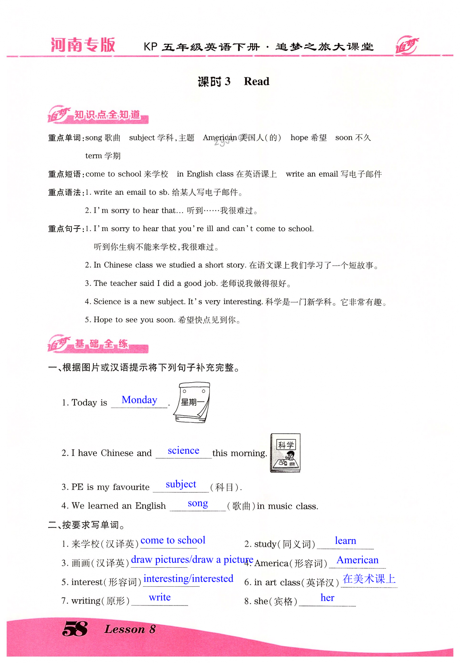 2022年追梦之旅大课堂五年级英语下册科普版河南专版