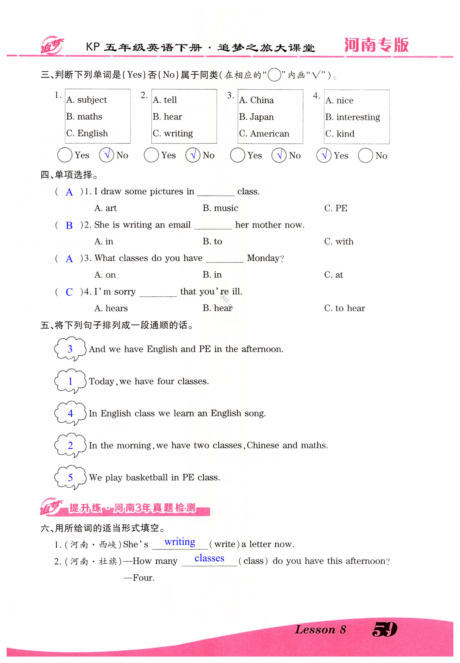 2022年追梦之旅大课堂五年级英语下册科普版河南专版