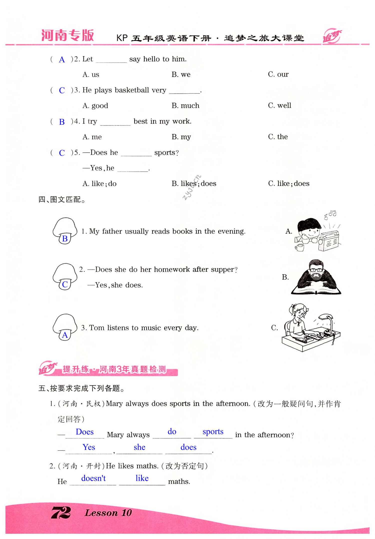 注:目前有些书本章节名称可能整理的还不是很完善,但都是按照顺序排列的,请同学们按照顺序仔细查找。练习册 2022年追梦之旅大课堂五年级英语下册科普版河南专版 答案主要是用来给同学们做完题方便对答案用的,请勿直接抄袭。