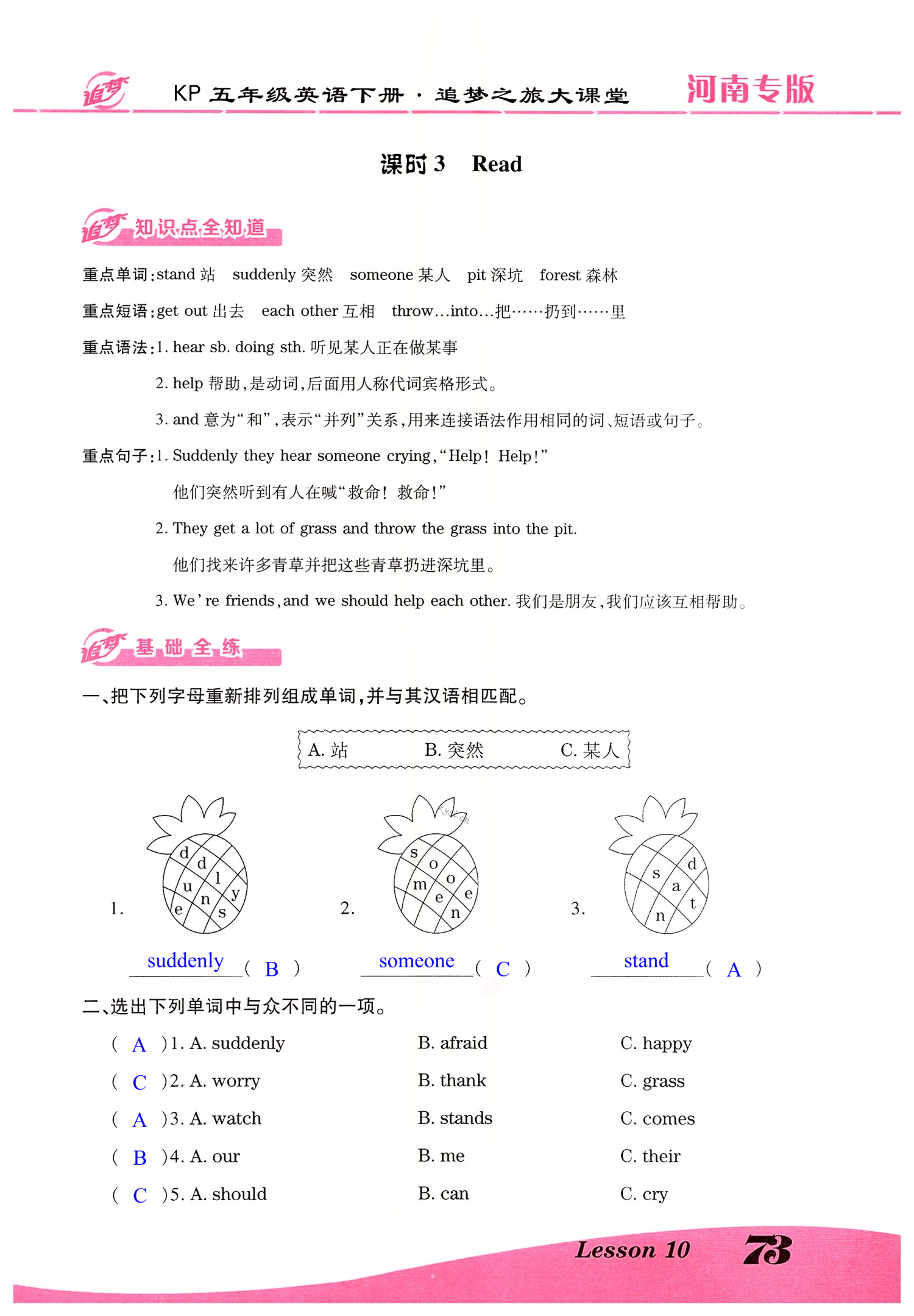 2022年追梦之旅大课堂五年级英语下册科普版河南专版