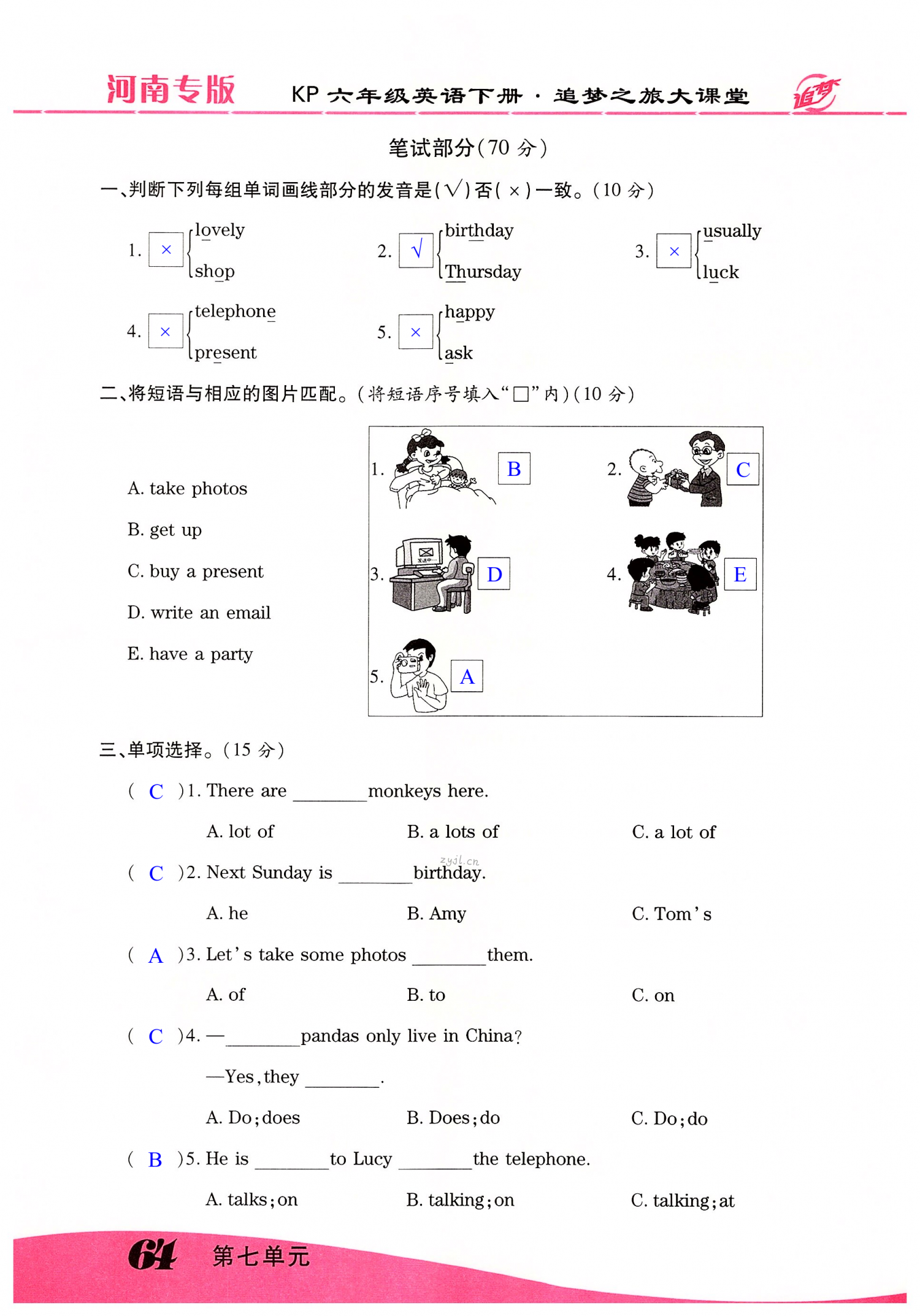 注:目前有些书本章节名称可能整理的还不是很完善,但都是按照顺序排列的,请同学们按照顺序仔细查找。练习册 2022年追梦之旅大课堂六年级英语下册科普版河南专版 答案主要是用来给同学们做完题方便对答案用的,请勿直接抄袭。