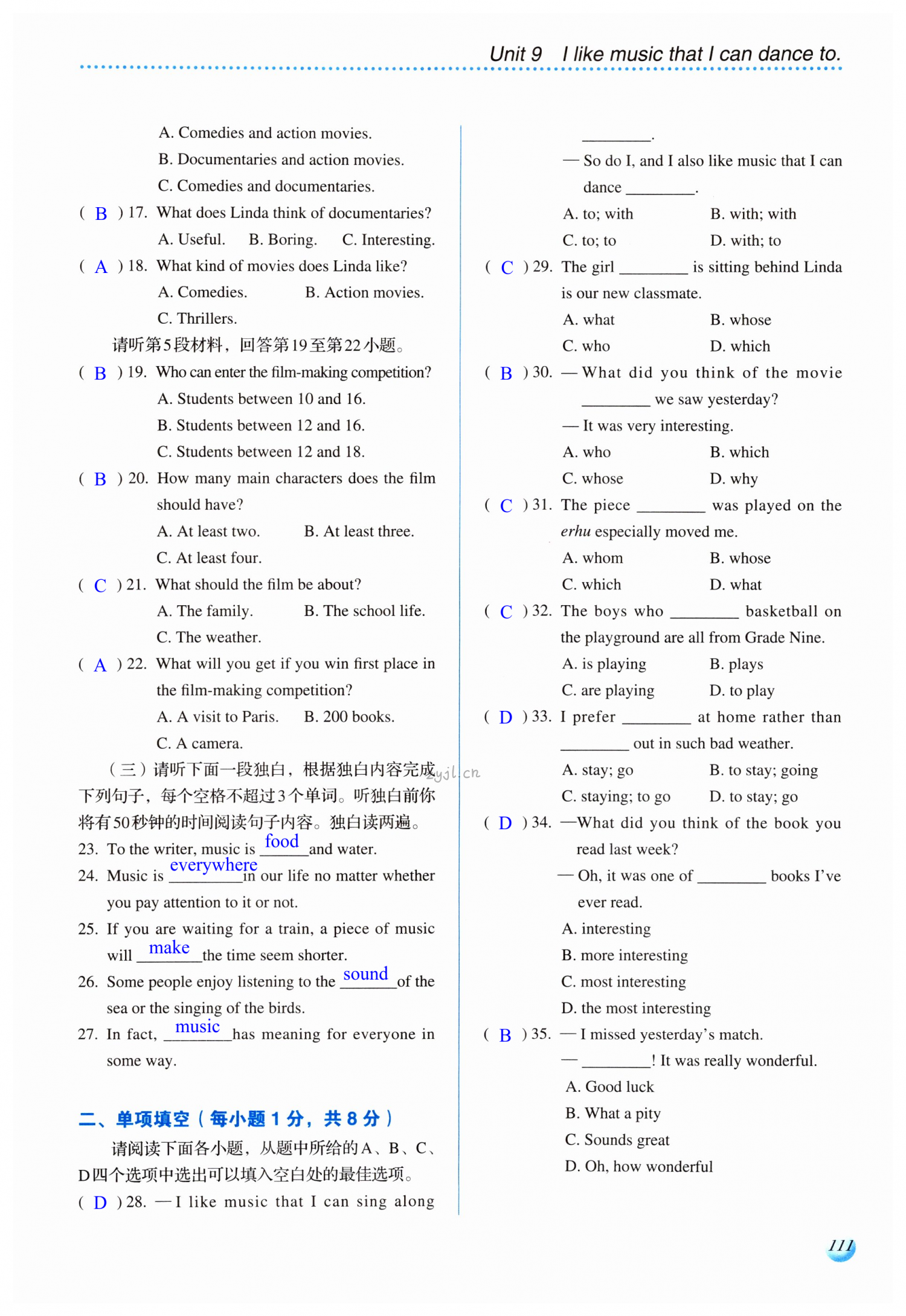 注:目前有些书本章节名称可能整理的还不是很完善,但都是按照顺序排列的,请同学们按照顺序仔细查找。练习册 2022年人教金学典同步解析与测评九年级英语全一册人教版 答案主要是用来给同学们做完题方便对答案用的,请勿直接抄袭。
