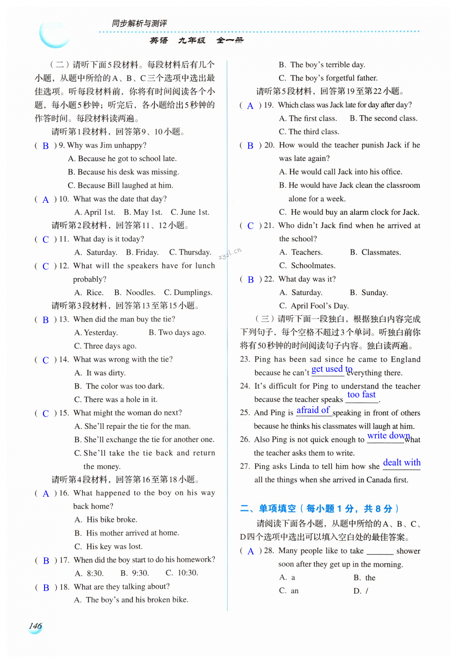 注:目前有些书本章节名称可能整理的还不是很完善,但都是按照顺序排列的,请同学们按照顺序仔细查找。练习册 2022年人教金学典同步解析与测评九年级英语全一册人教版 答案主要是用来给同学们做完题方便对答案用的,请勿直接抄袭。