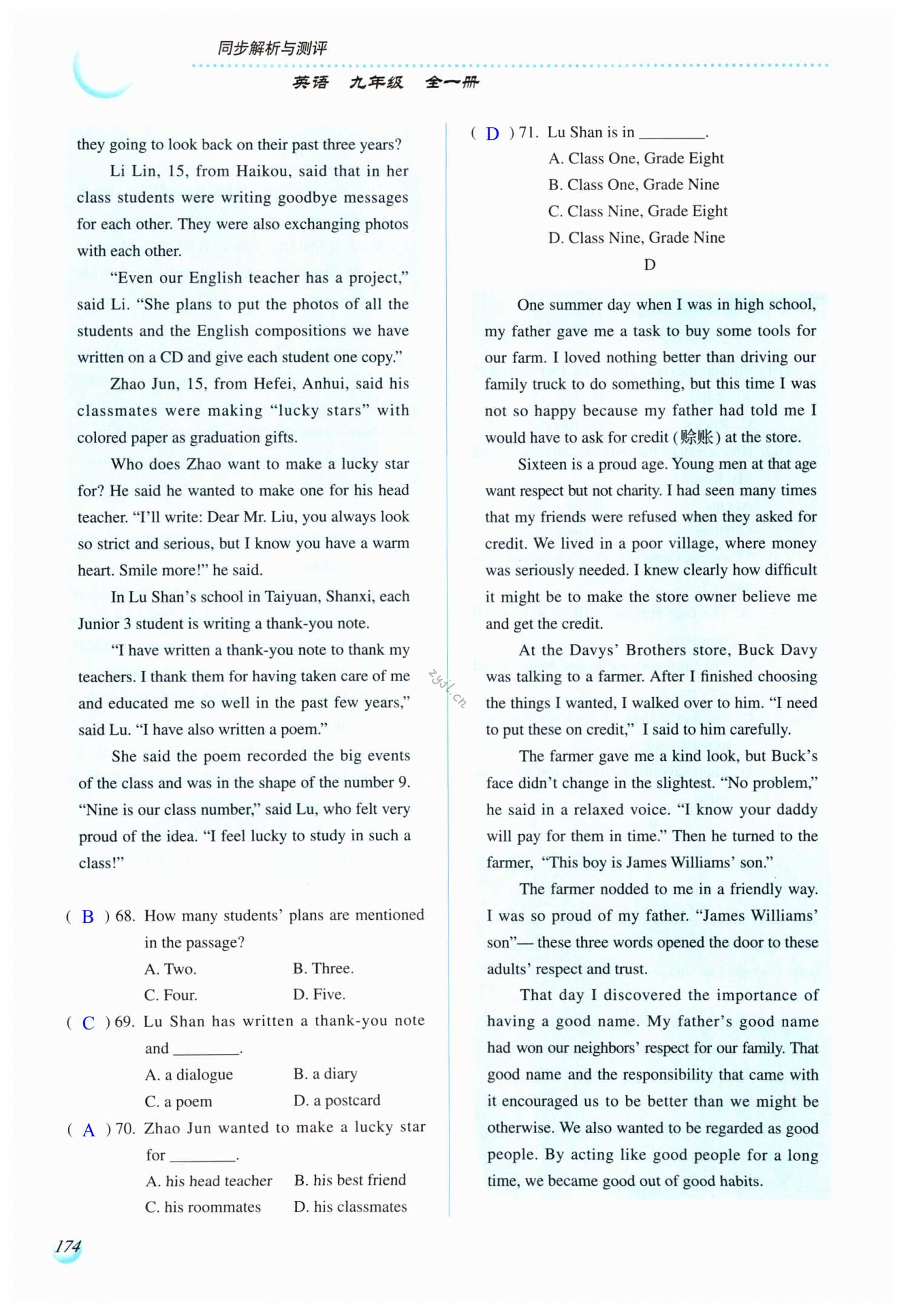 注:目前有些书本章节名称可能整理的还不是很完善,但都是按照顺序排列的,请同学们按照顺序仔细查找。练习册 2022年人教金学典同步解析与测评九年级英语全一册人教版 答案主要是用来给同学们做完题方便对答案用的,请勿直接抄袭。