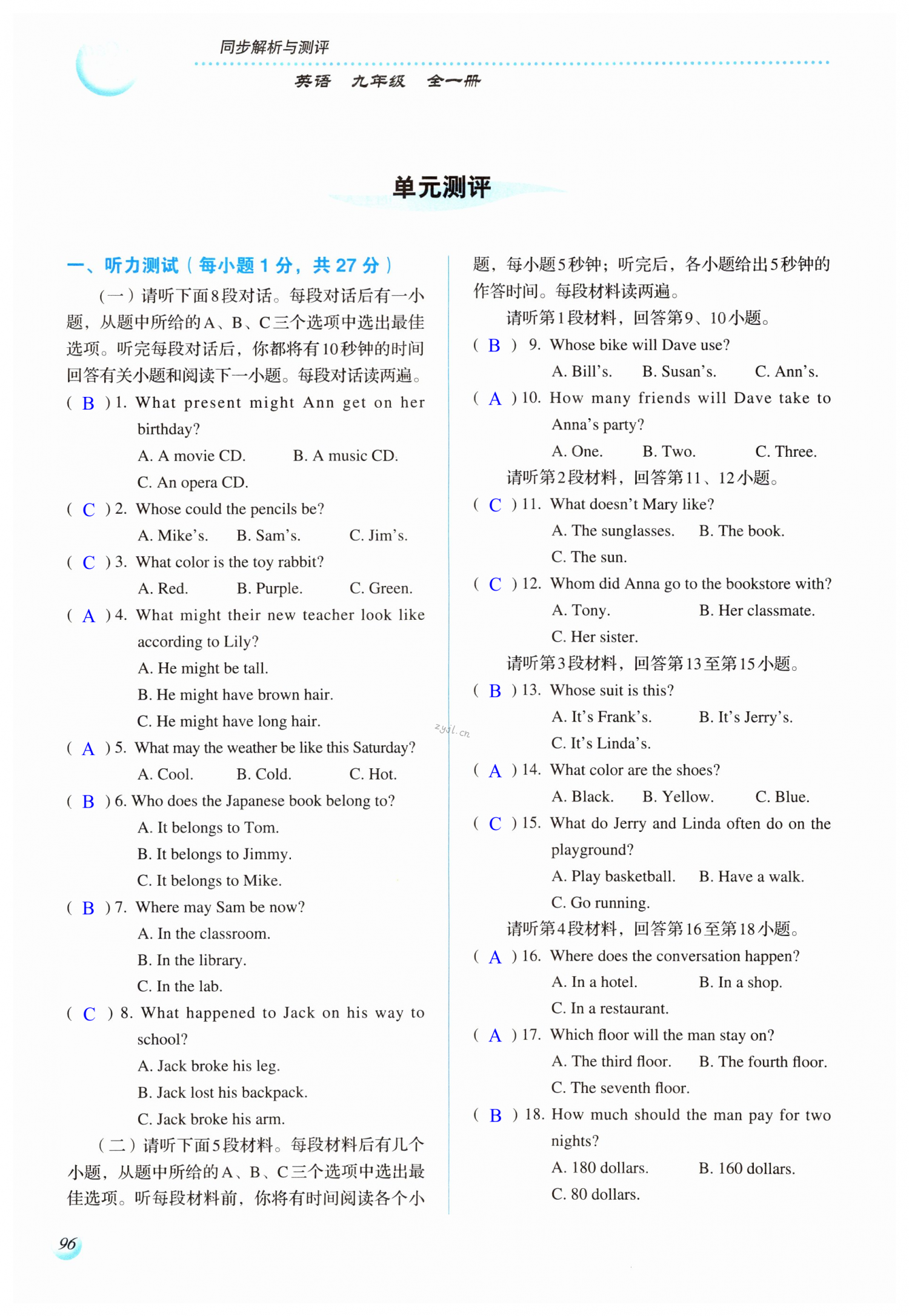 注:目前有些书本章节名称可能整理的还不是很完善,但都是按照顺序排列的,请同学们按照顺序仔细查找。练习册 2022年人教金学典同步解析与测评九年级英语全一册人教版 答案主要是用来给同学们做完题方便对答案用的,请勿直接抄袭。