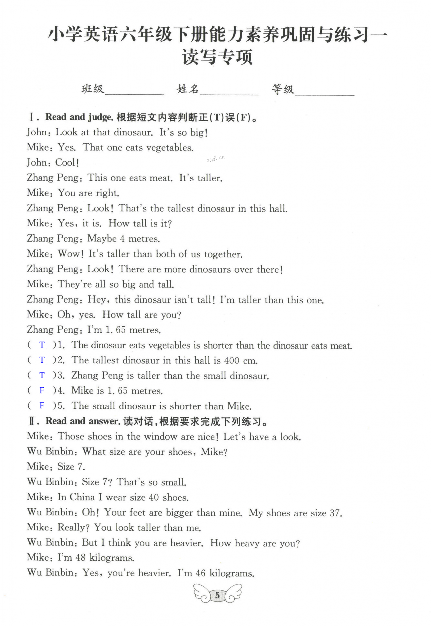 注:目前有些书本章节名称可能整理的还不是很完善,但都是按照顺序排列的,请同学们按照顺序仔细查找。练习册 2022年小学能力素养巩固与练习六年级英语下册人教版 答案主要是用来给同学们做完题方便对答案用的,请勿直接抄袭。
