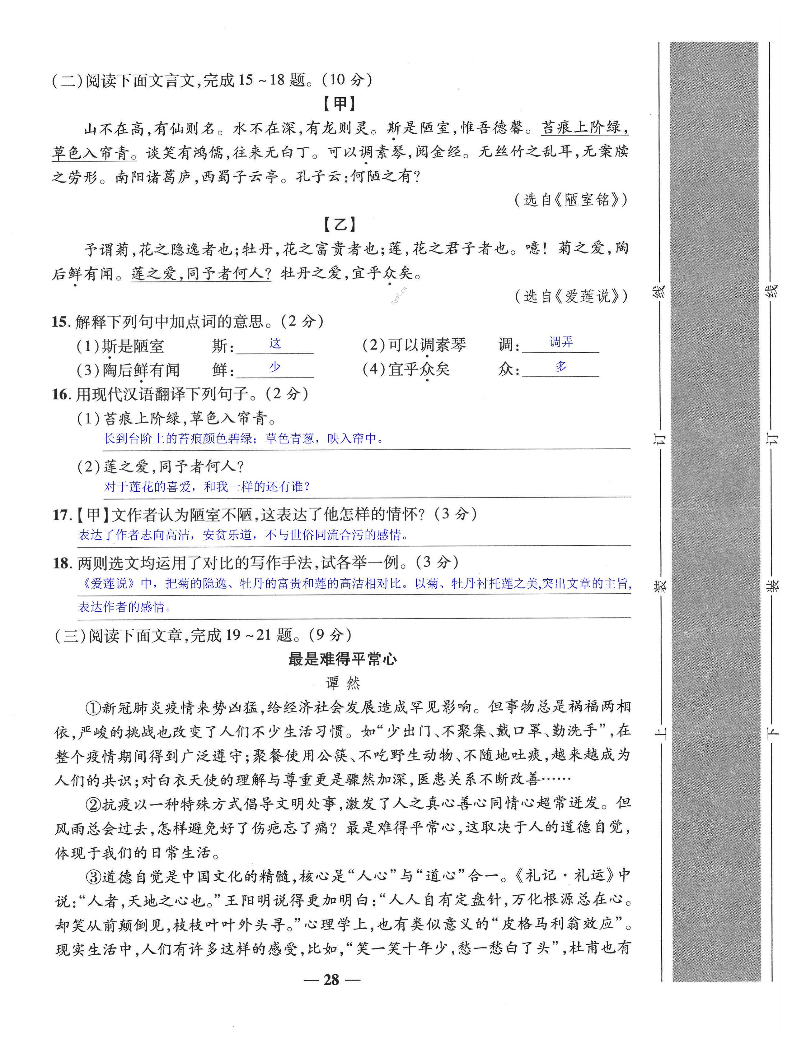 注:目前有些书本章节名称可能整理的还不是很完善,但都是按照顺序排列的,请同学们按照顺序仔细查找。练习册 2022年云南本土名校金卷七年级语文下册人教版 答案主要是用来给同学们做完题方便对答案用的,请勿直接抄袭。