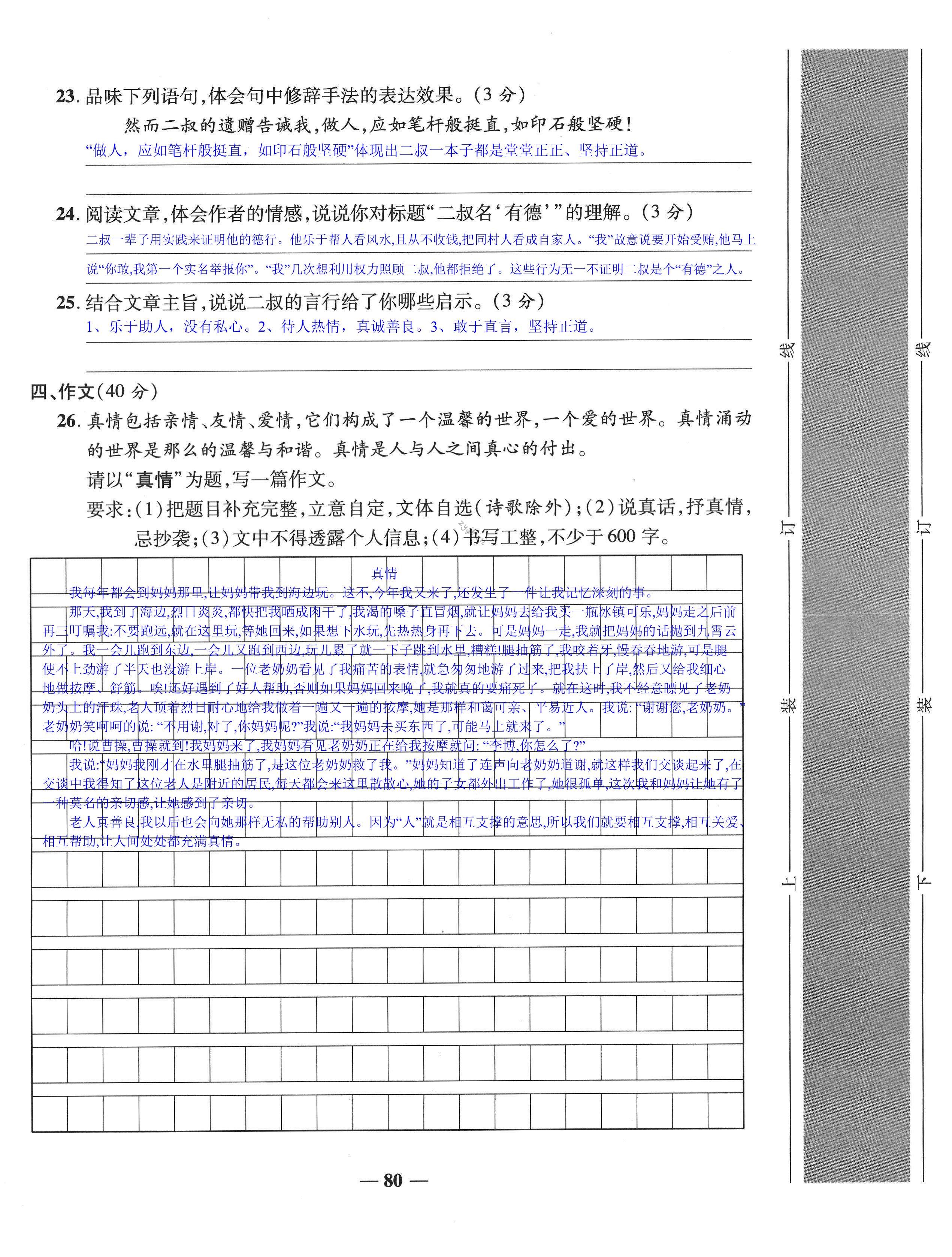 注:目前有些书本章节名称可能整理的还不是很完善,但都是按照顺序排列的,请同学们按照顺序仔细查找。练习册 2022年云南本土名校金卷七年级语文下册人教版 答案主要是用来给同学们做完题方便对答案用的,请勿直接抄袭。