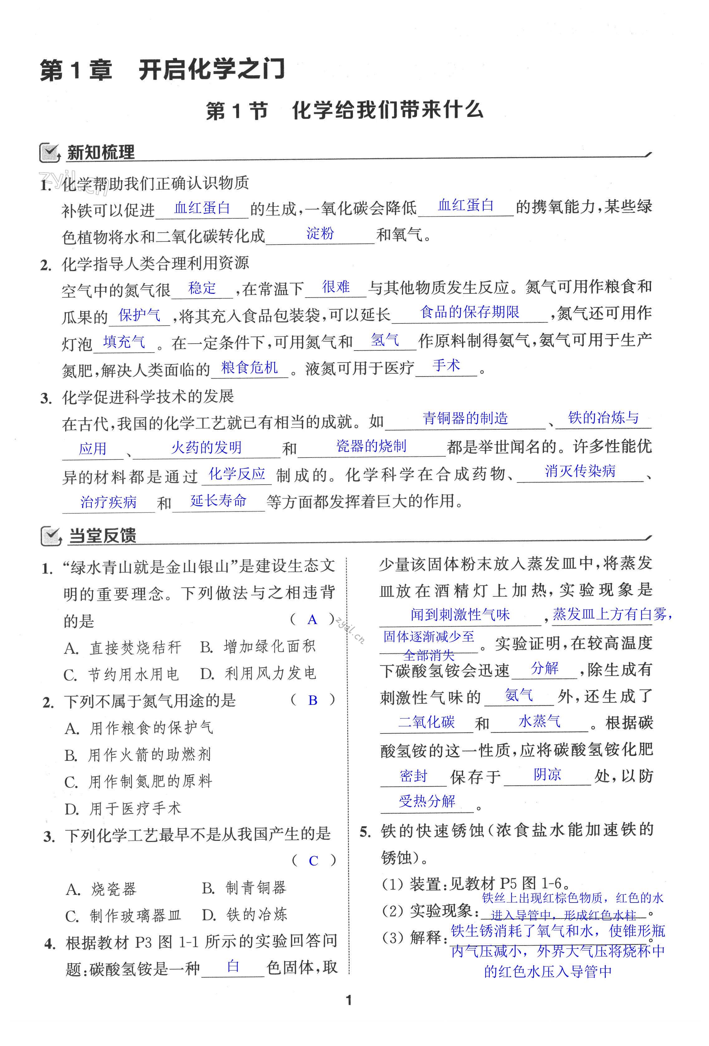 注:目前有些书本章节名称可能整理的还不是很完善,但都是按照顺序排列的,请同学们按照顺序仔细查找。练习册 2022年通城学典课时作业本九年级化学上册沪教版 答案主要是用来给同学们做完题方便对答案用的,请勿直接抄袭。
