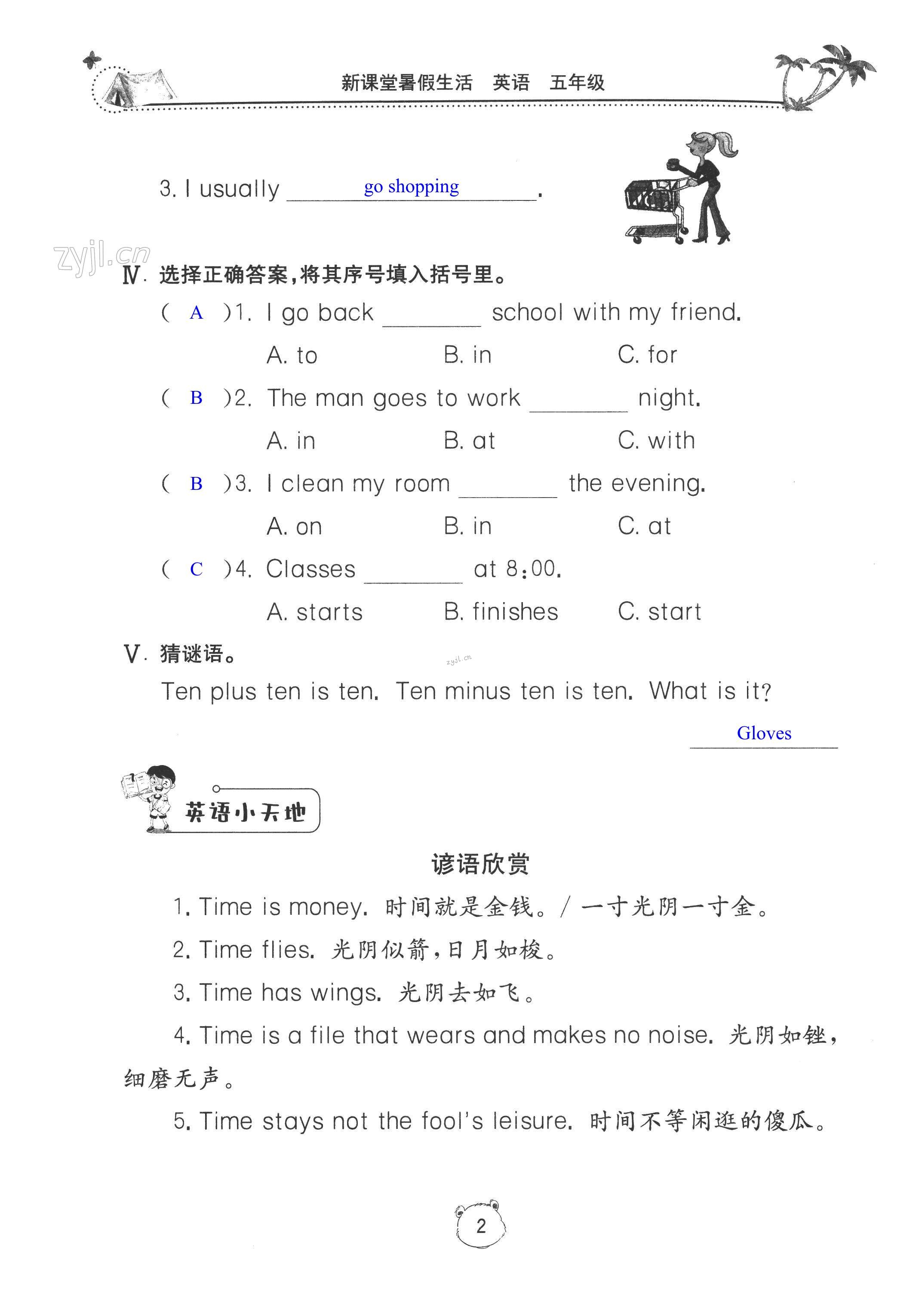 2022年新课堂暑假生活五年级英语