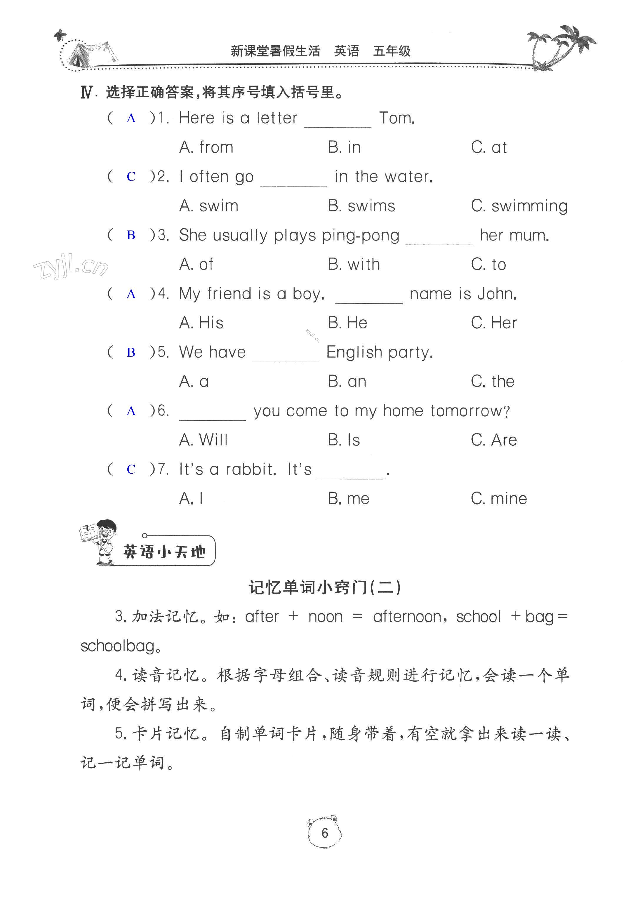 2022年新课堂暑假生活五年级英语