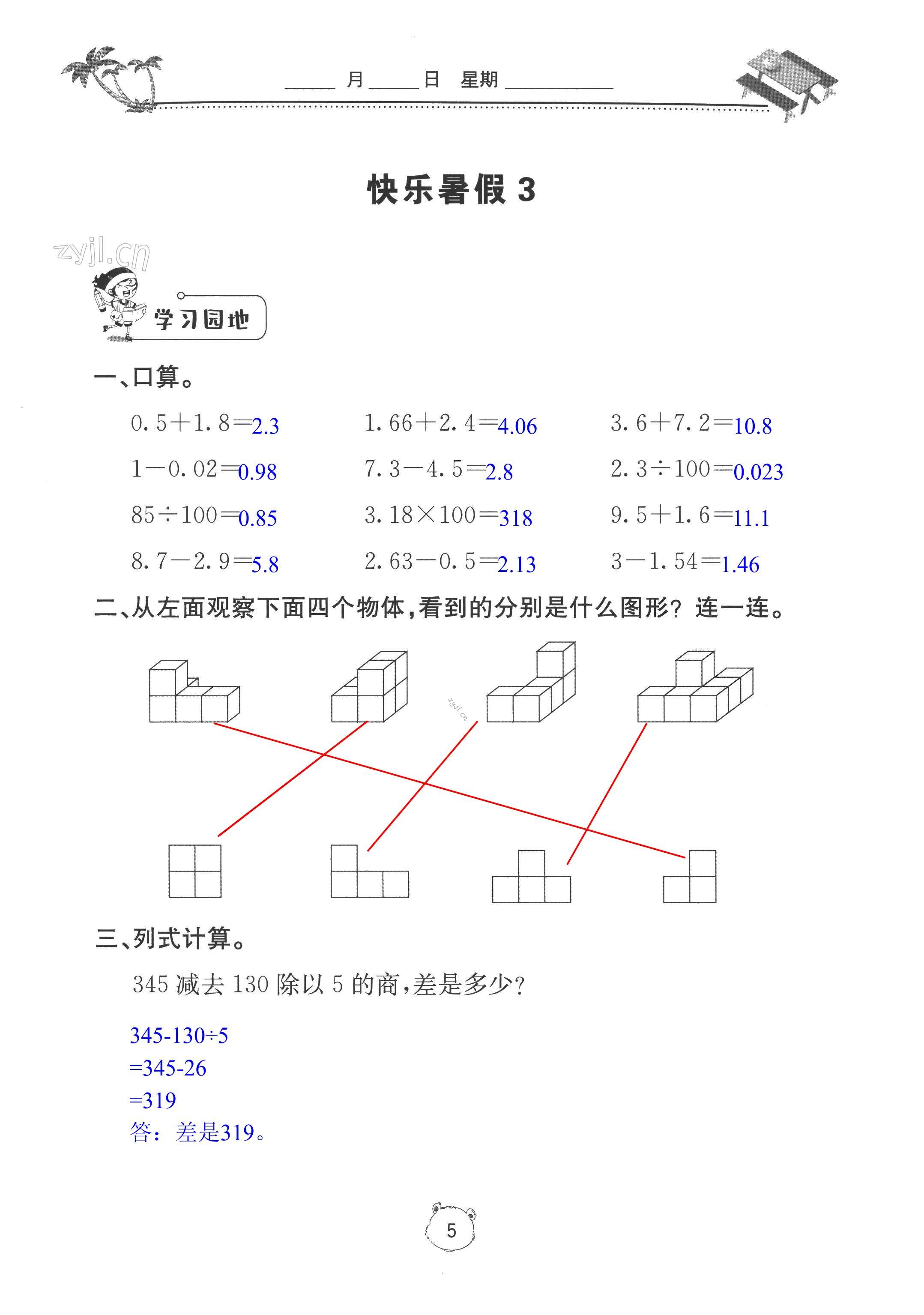 注:目前有些书本章节名称可能整理的还不是很完善,但都是按照顺序排列的,请同学们按照顺序仔细查找。练习册 2022年新课堂暑假生活四年级数学 答案主要是用来给同学们做完题方便对答案用的,请勿直接抄袭。