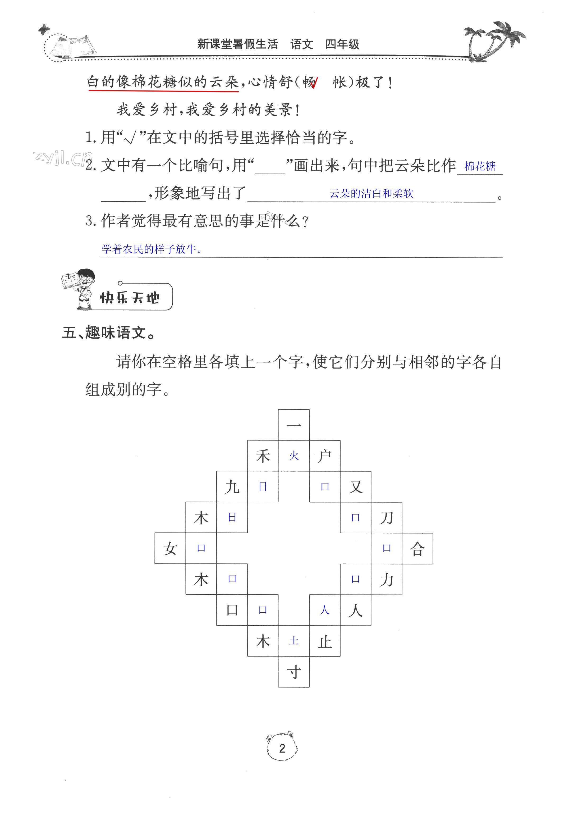 注:目前有些书本章节名称可能整理的还不是很完善,但都是按照顺序排列的,请同学们按照顺序仔细查找。练习册 2022年新课堂暑假生活四年级语文 答案主要是用来给同学们做完题方便对答案用的,请勿直接抄袭。