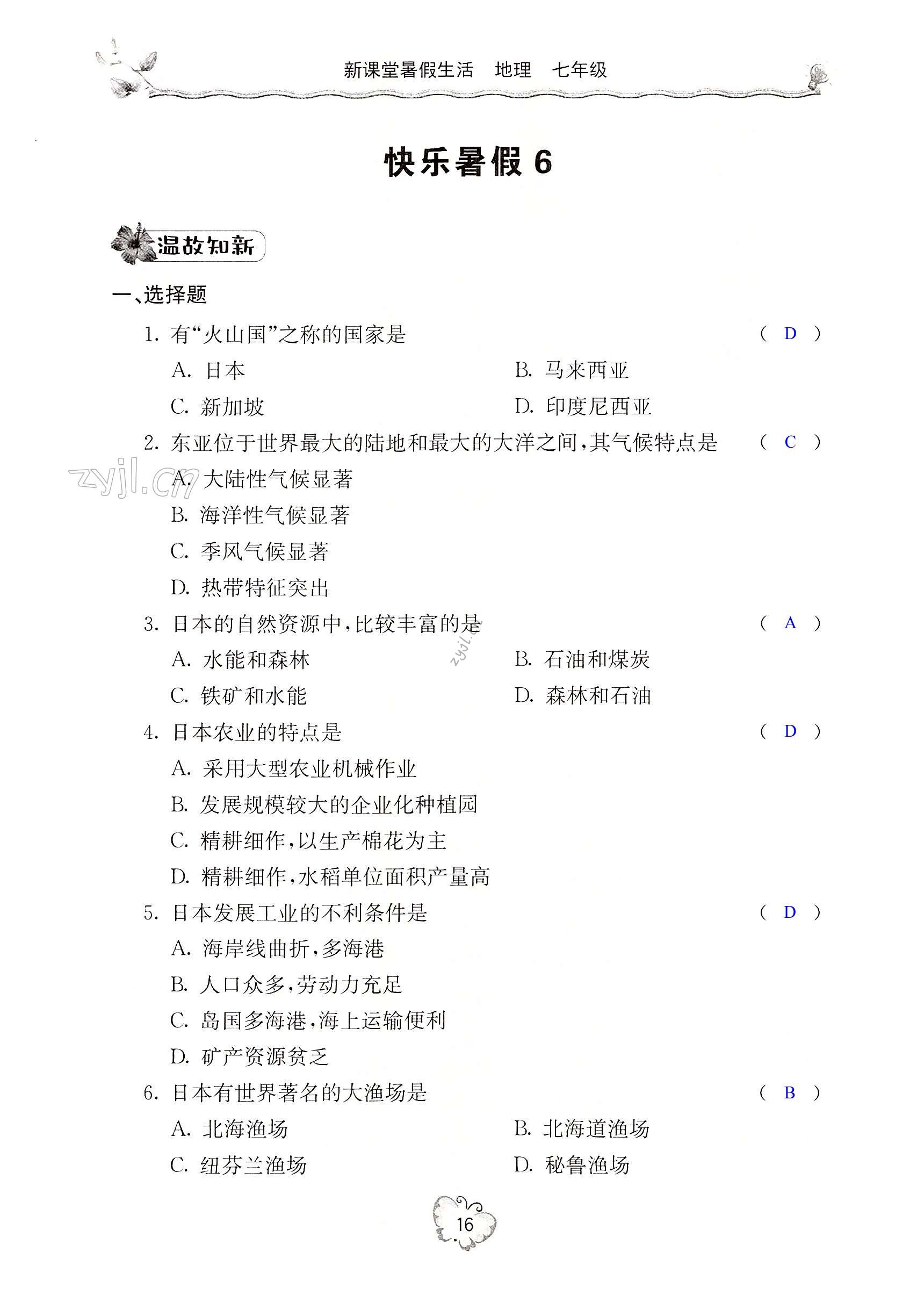 注:目前有些书本章节名称可能整理的还不是很完善,但都是按照顺序排列的,请同学们按照顺序仔细查找。练习册 2022年新课堂暑假生活七年级地理 答案主要是用来给同学们做完题方便对答案用的,请勿直接抄袭。