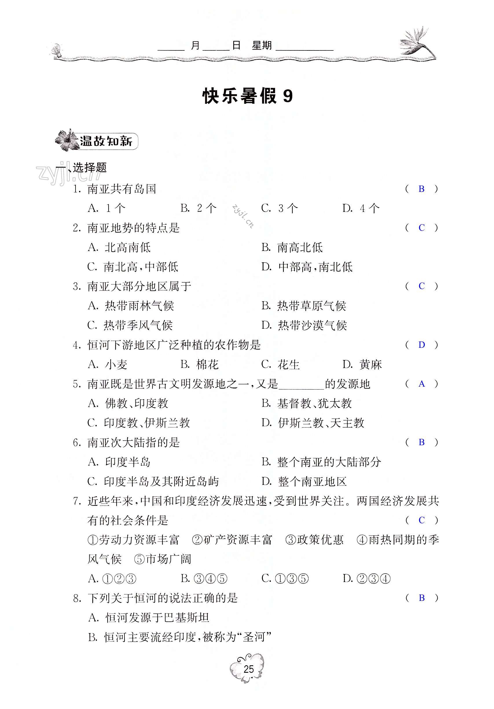 注:目前有些书本章节名称可能整理的还不是很完善,但都是按照顺序排列的,请同学们按照顺序仔细查找。练习册 2022年新课堂暑假生活七年级地理 答案主要是用来给同学们做完题方便对答案用的,请勿直接抄袭。