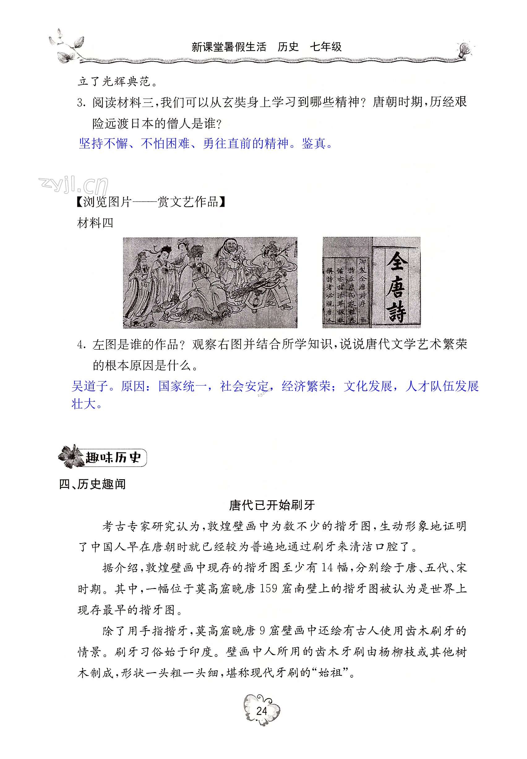 注:目前有些书本章节名称可能整理的还不是很完善,但都是按照顺序排列的,请同学们按照顺序仔细查找。练习册 2022年新课堂暑假生活七年级历史 答案主要是用来给同学们做完题方便对答案用的,请勿直接抄袭。