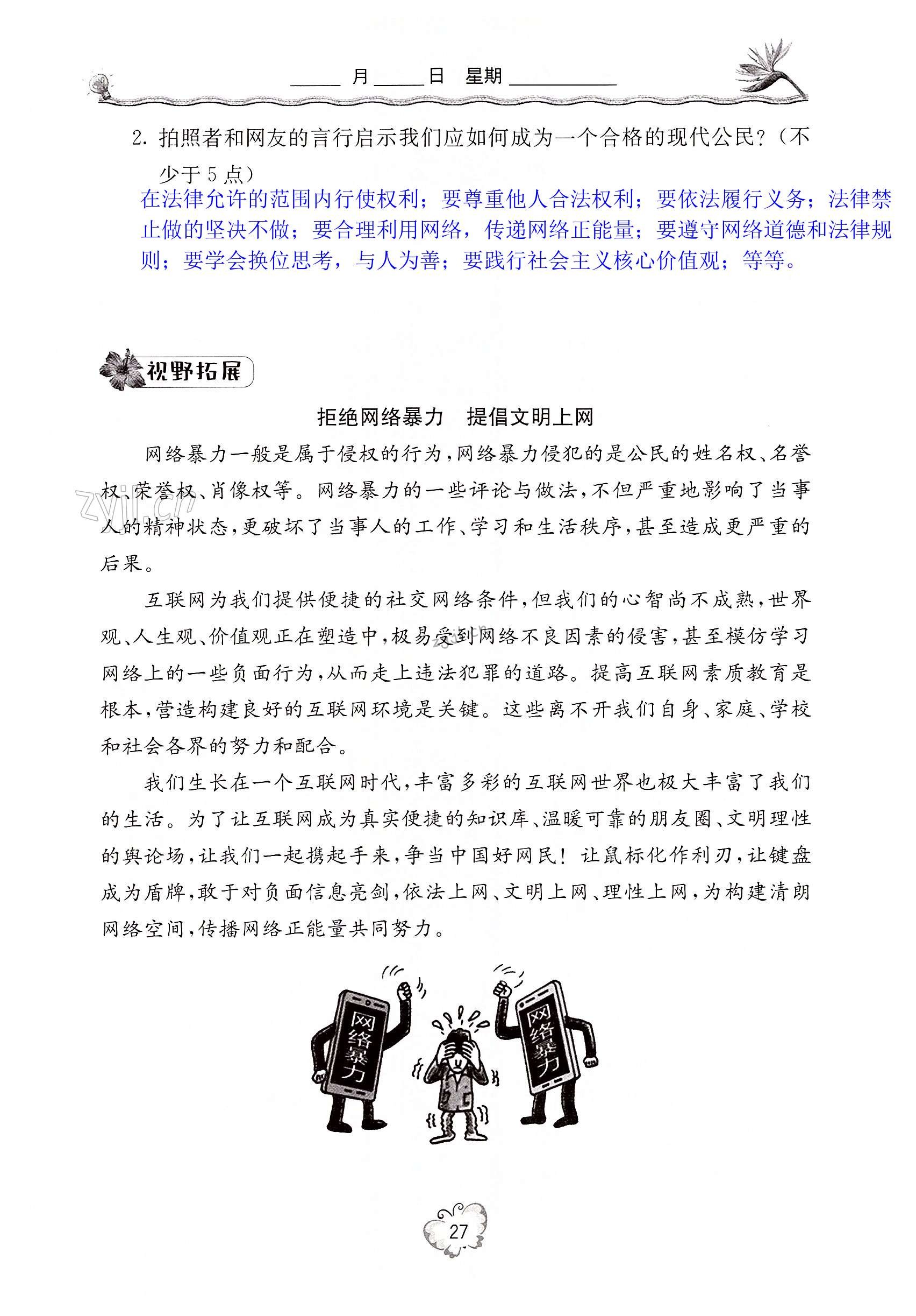 注:目前有些书本章节名称可能整理的还不是很完善,但都是按照顺序排列的,请同学们按照顺序仔细查找。练习册 2022年新课堂暑假生活八年级道德与法治 答案主要是用来给同学们做完题方便对答案用的,请勿直接抄袭。