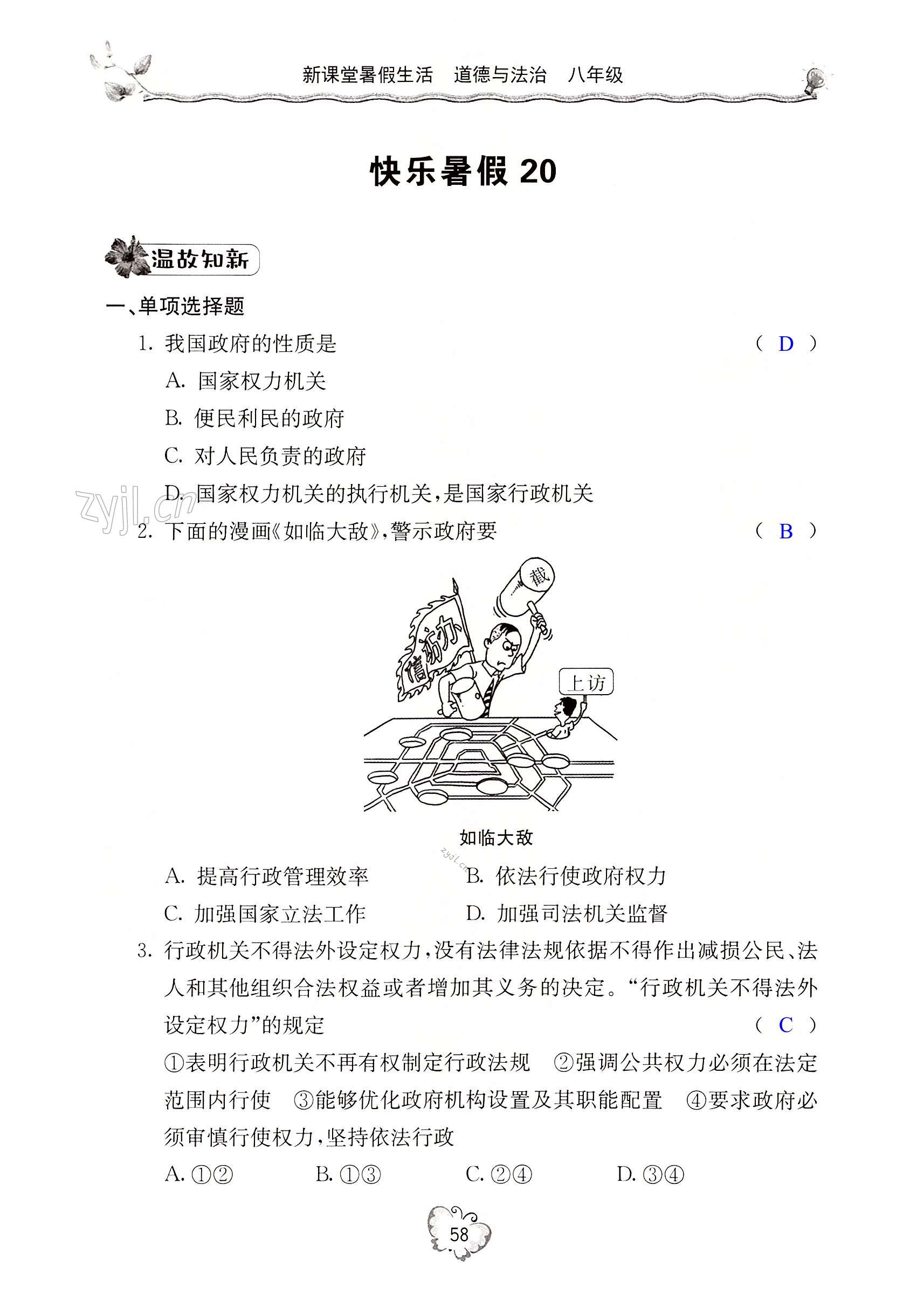 注:目前有些书本章节名称可能整理的还不是很完善,但都是按照顺序排列的,请同学们按照顺序仔细查找。练习册 2022年新课堂暑假生活八年级道德与法治 答案主要是用来给同学们做完题方便对答案用的,请勿直接抄袭。