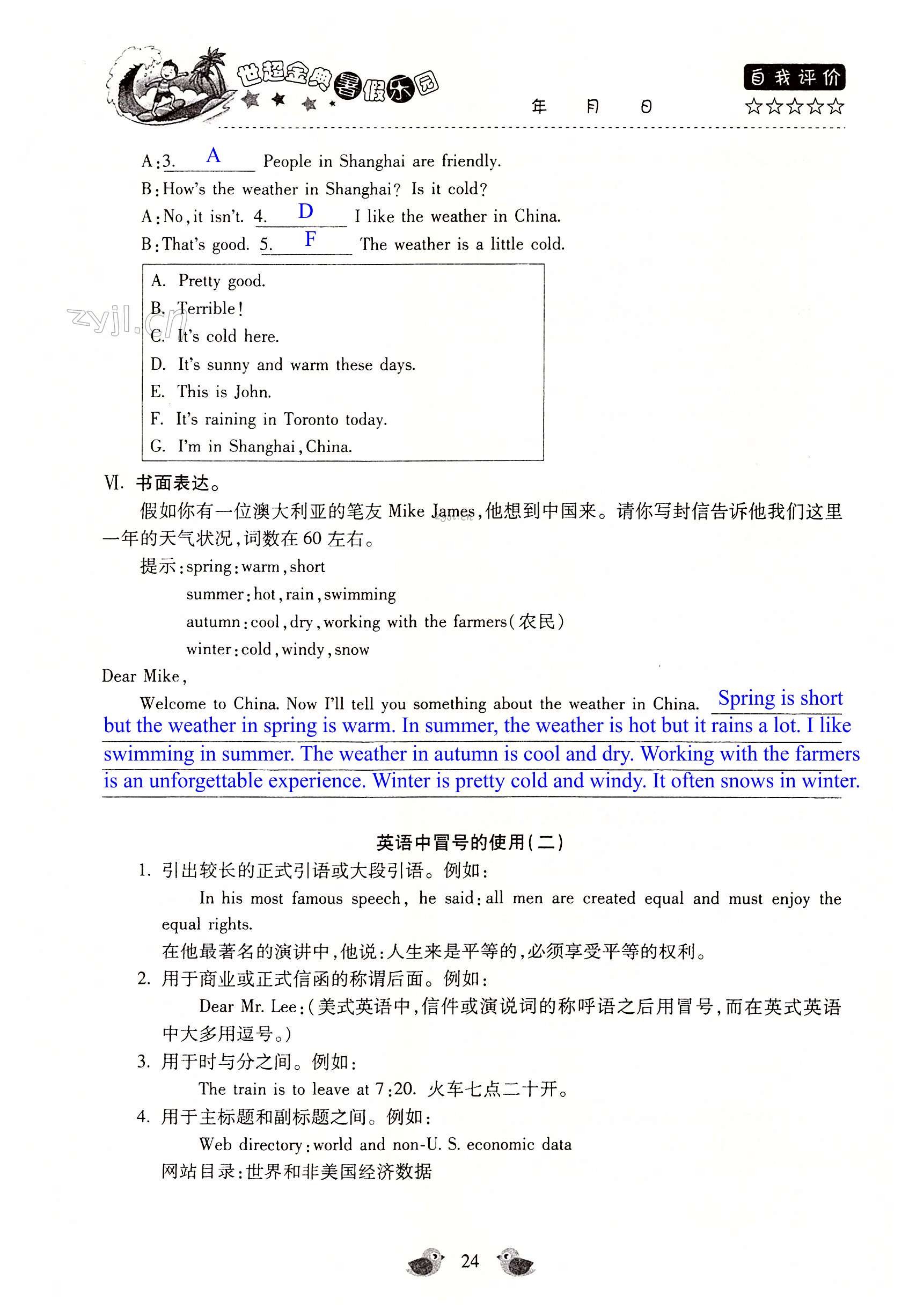 注:目前有些书本章节名称可能整理的还不是很完善,但都是按照顺序排列的,请同学们按照顺序仔细查找。练习册 2022年世超金典暑假乐园暑假七年级英语人教版 答案主要是用来给同学们做完题方便对答案用的,请勿直接抄袭。