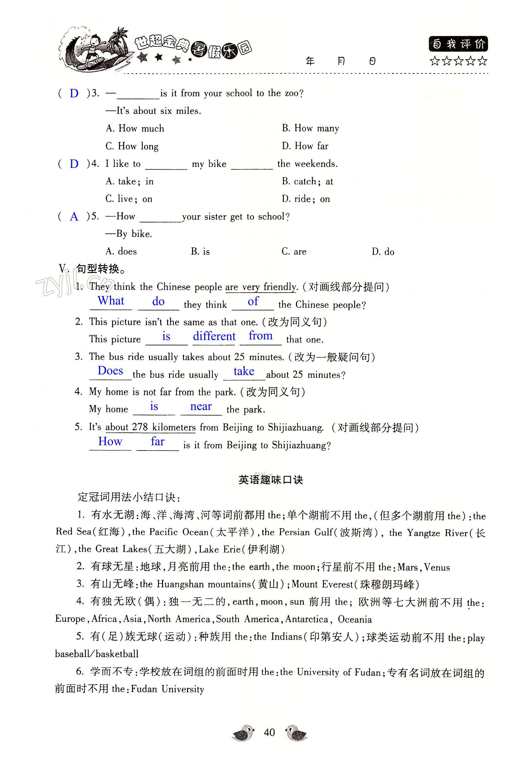 注:目前有些书本章节名称可能整理的还不是很完善,但都是按照顺序排列的,请同学们按照顺序仔细查找。练习册 2022年世超金典暑假乐园暑假七年级英语人教版 答案主要是用来给同学们做完题方便对答案用的,请勿直接抄袭。