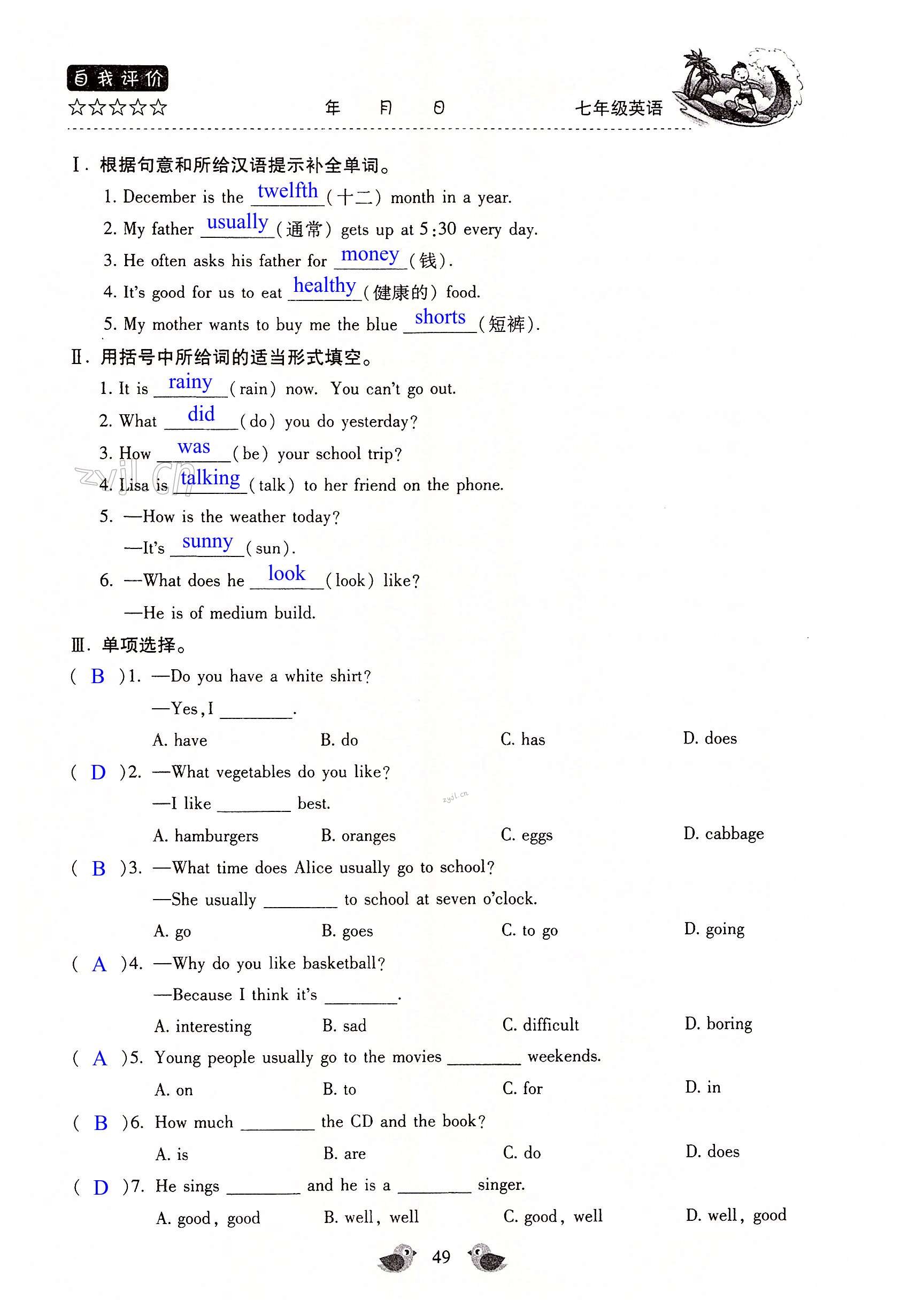 注:目前有些书本章节名称可能整理的还不是很完善,但都是按照顺序排列的,请同学们按照顺序仔细查找。练习册 2022年世超金典暑假乐园暑假七年级英语人教版 答案主要是用来给同学们做完题方便对答案用的,请勿直接抄袭。