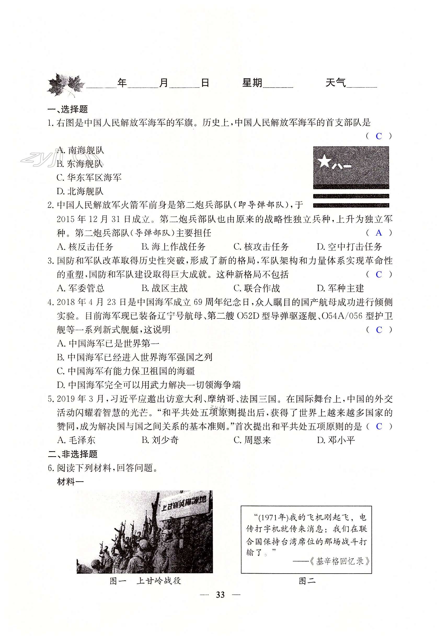 注:目前有些书本章节名称可能整理的还不是很完善,但都是按照顺序排列的,请同学们按照顺序仔细查找。练习册 2022年世超金典暑假乐园暑假八年级历史 答案主要是用来给同学们做完题方便对答案用的,请勿直接抄袭。