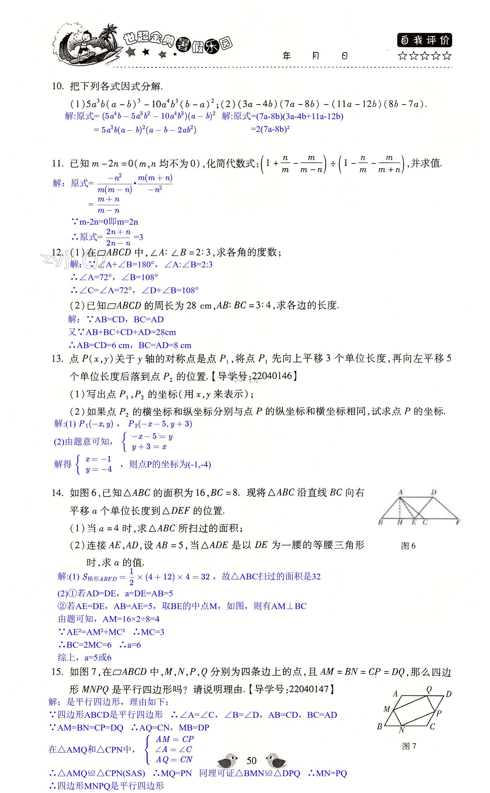 注:目前有些书本章节名称可能整理的还不是很完善,但都是按照顺序排列的,请同学们按照顺序仔细查找。练习册 2022年世超金典暑假乐园八年级数学北师大版 答案主要是用来给同学们做完题方便对答案用的,请勿直接抄袭。