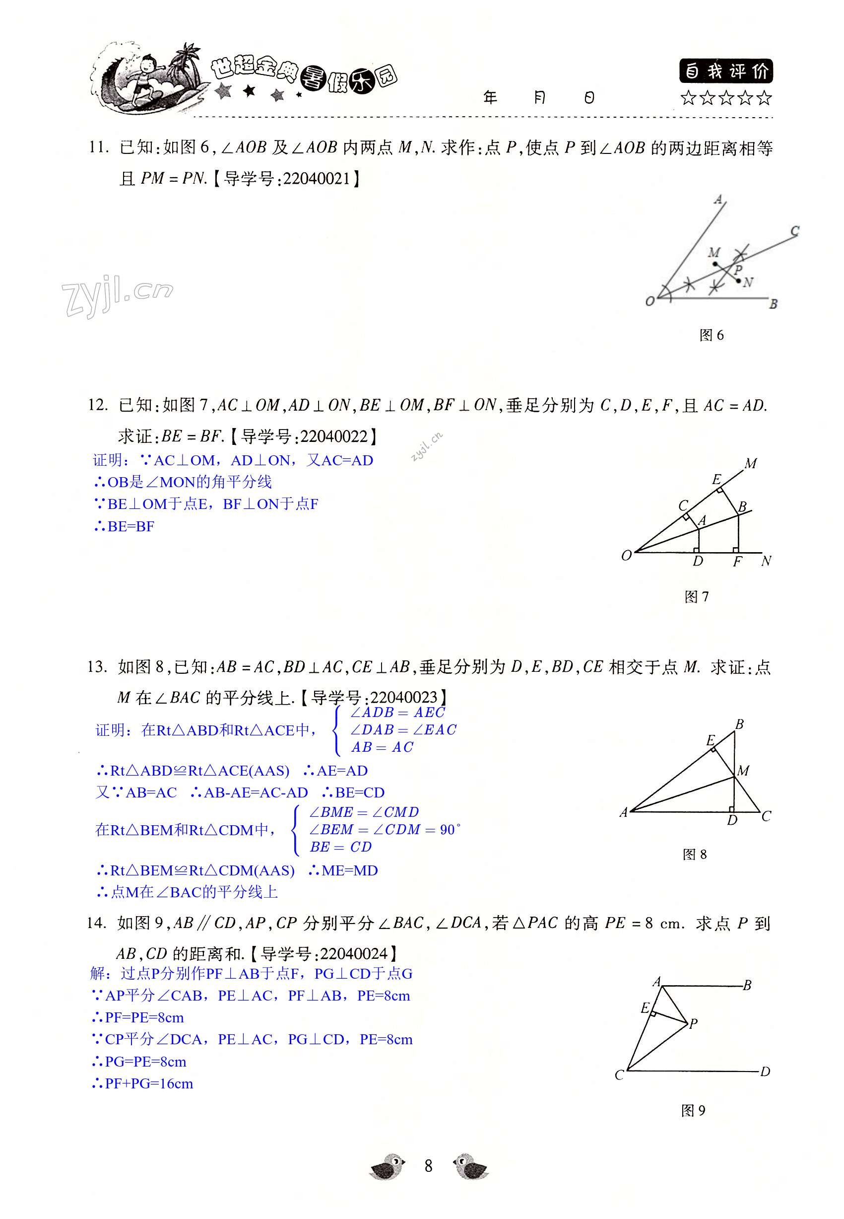《2022年世超金典暑假乐园八年级数学北师大版》