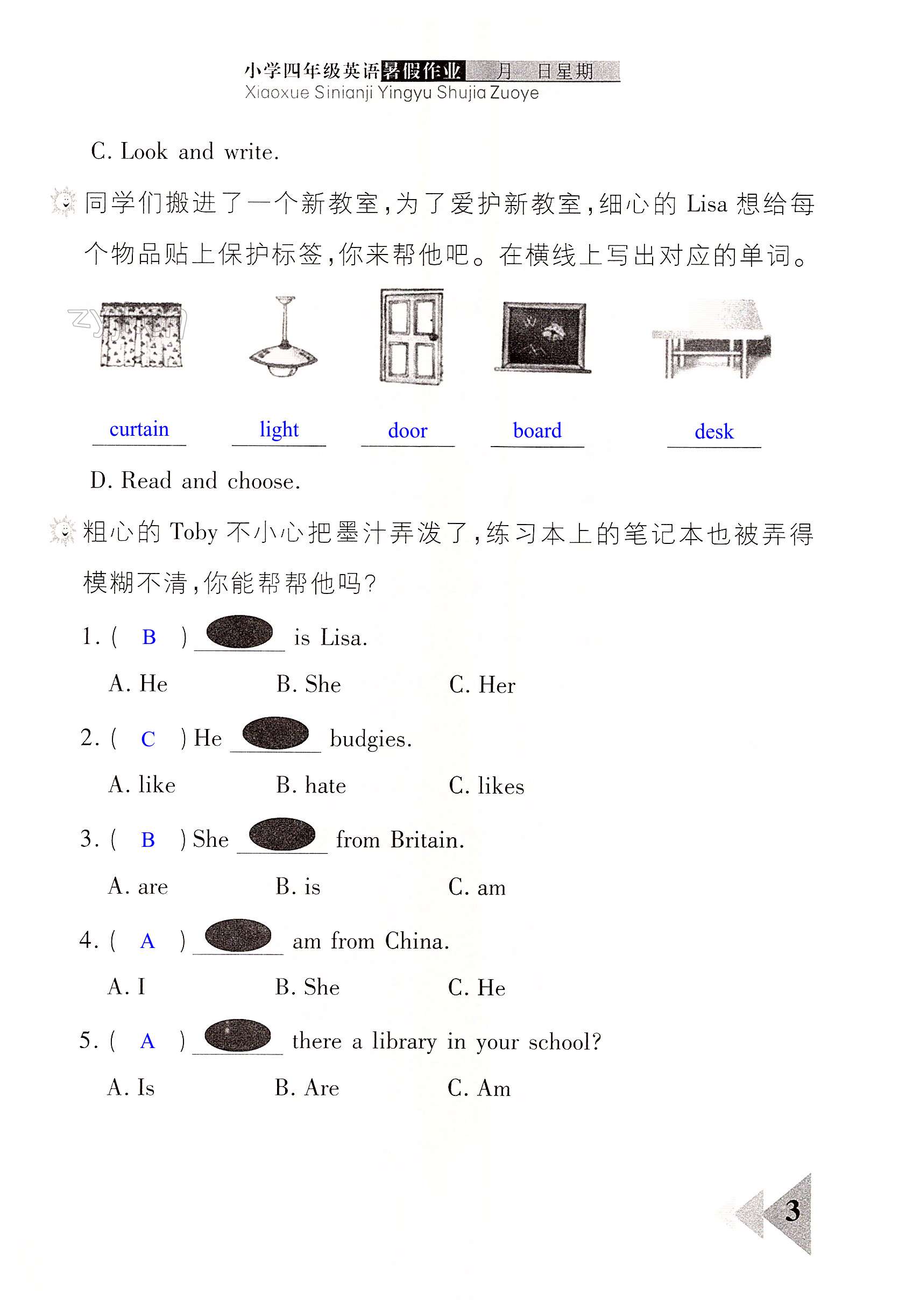 注:目前有些书本章节名称可能整理的还不是很完善,但都是按照顺序排列的,请同学们按照顺序仔细查找。练习册 2022年开心假期暑假作业武汉出版社四年级英语剑桥版武汉出版社 答案主要是用来给同学们做完题方便对答案用的,请勿直接抄袭。