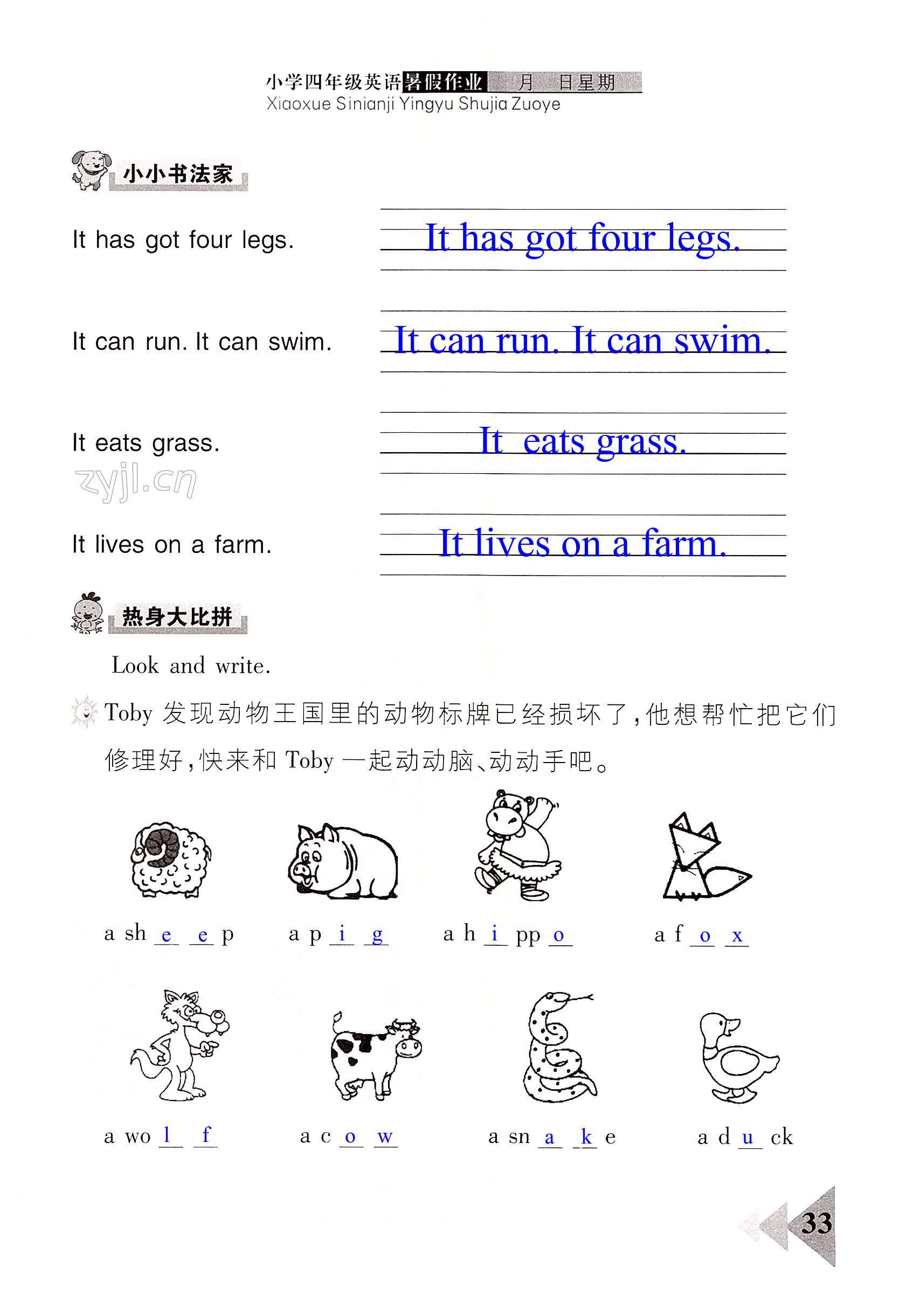 注:目前有些书本章节名称可能整理的还不是很完善,但都是按照顺序排列的,请同学们按照顺序仔细查找。练习册 2022年开心假期暑假作业武汉出版社四年级英语剑桥版武汉出版社 答案主要是用来给同学们做完题方便对答案用的,请勿直接抄袭。