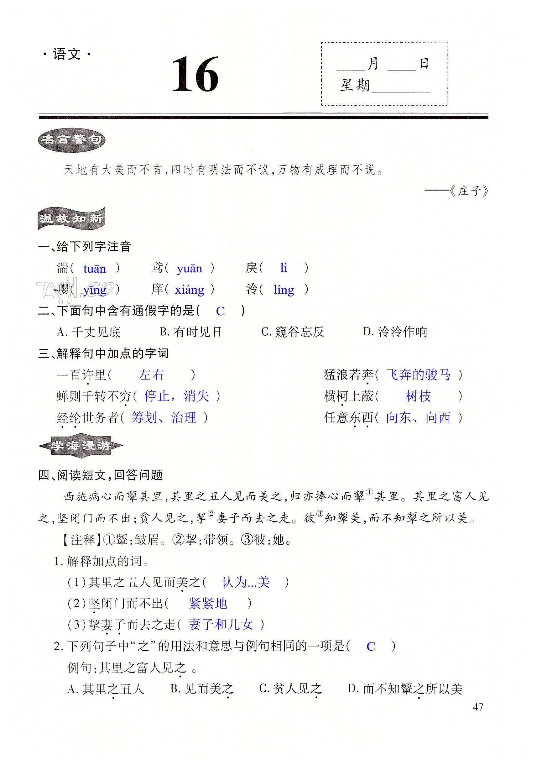 注:目前有些书本章节名称可能整理的还不是很完善,但都是按照顺序排列的,请同学们按照顺序仔细查找。练习册 2022年假期学习乐园暑假八年级语文英语历史与社会道德与法治 答案主要是用来给同学们做完题方便对答案用的,请勿直接抄袭。