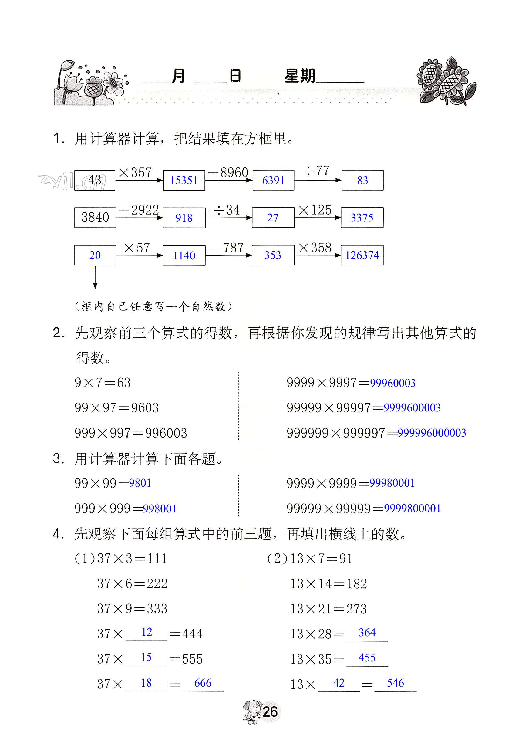 注:目前有些书本章节名称可能整理的还不是很完善,但都是按照顺序排列的,请同学们按照顺序仔细查找。练习册 2022年暑假作业海燕出版社四年级数学苏教版 答案主要是用来给同学们做完题方便对答案用的,请勿直接抄袭。