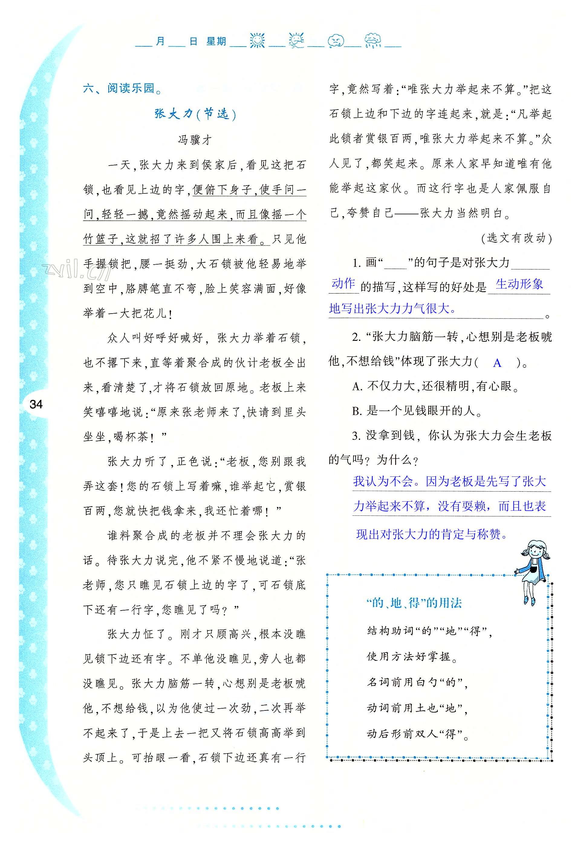2022年暑假作业与生活三年级语文A版陕西人民教育出版社