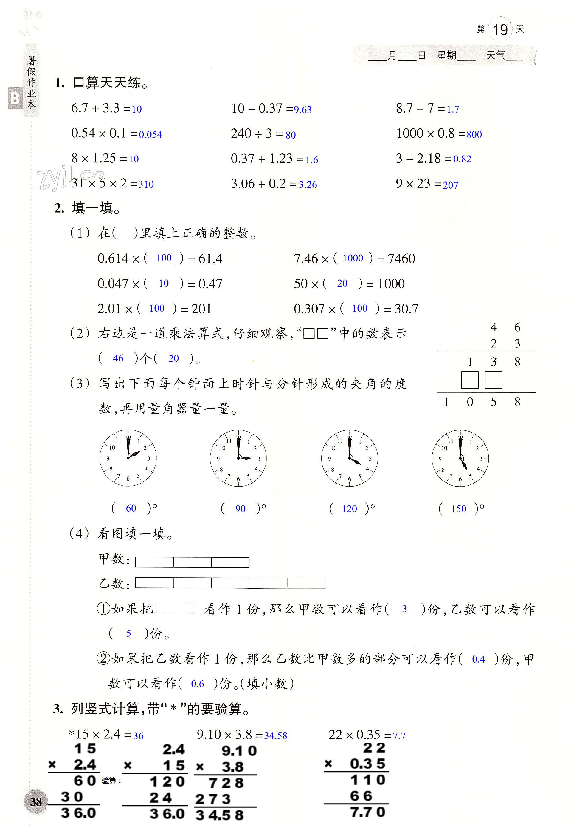 注:目前有些书本章节名称可能整理的还不是很完善,但都是按照顺序排列的,请同学们按照顺序仔细查找。练习册 2022年暑假作业本四年级数学B科学浙江教育出版社 答案主要是用来给同学们做完题方便对答案用的,请勿直接抄袭。