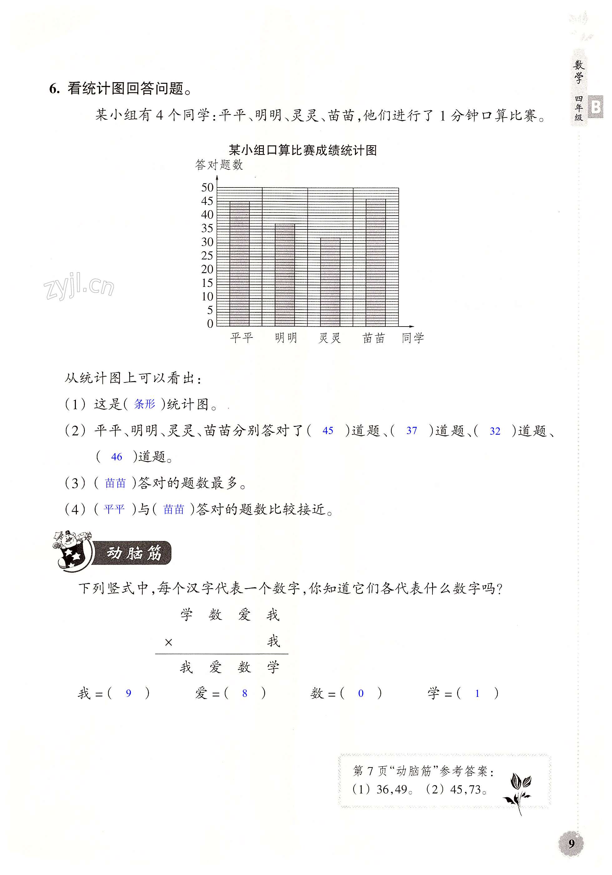 注:目前有些书本章节名称可能整理的还不是很完善,但都是按照顺序排列的,请同学们按照顺序仔细查找。练习册 2022年暑假作业本四年级数学B科学浙江教育出版社 答案主要是用来给同学们做完题方便对答案用的,请勿直接抄袭。