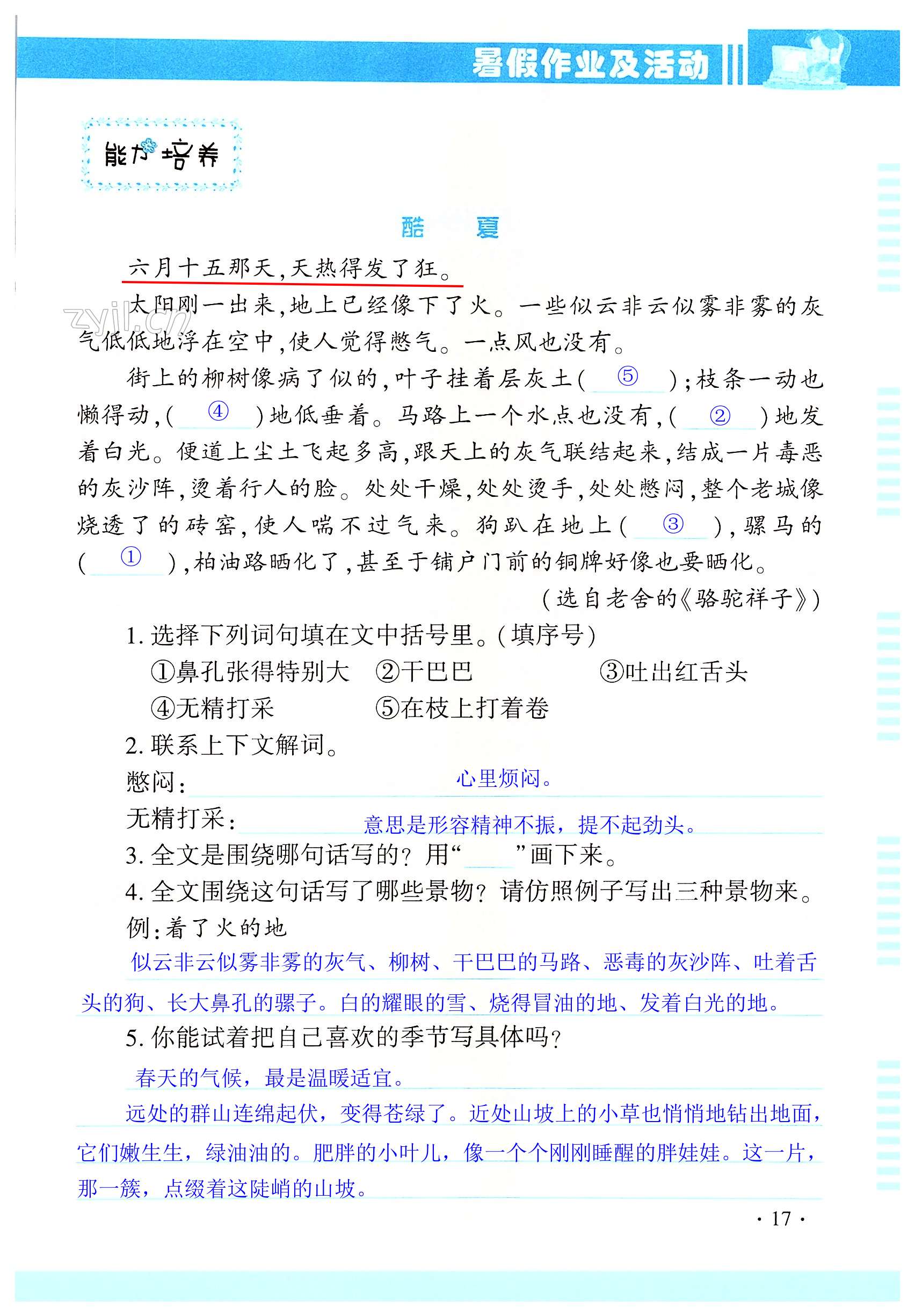 注:目前有些书本章节名称可能整理的还不是很完善,但都是按照顺序排列的,请同学们按照顺序仔细查找。练习册 2022年暑假作业及活动三年级语文新疆文化出版社 答案主要是用来给同学们做完题方便对答案用的,请勿直接抄袭。