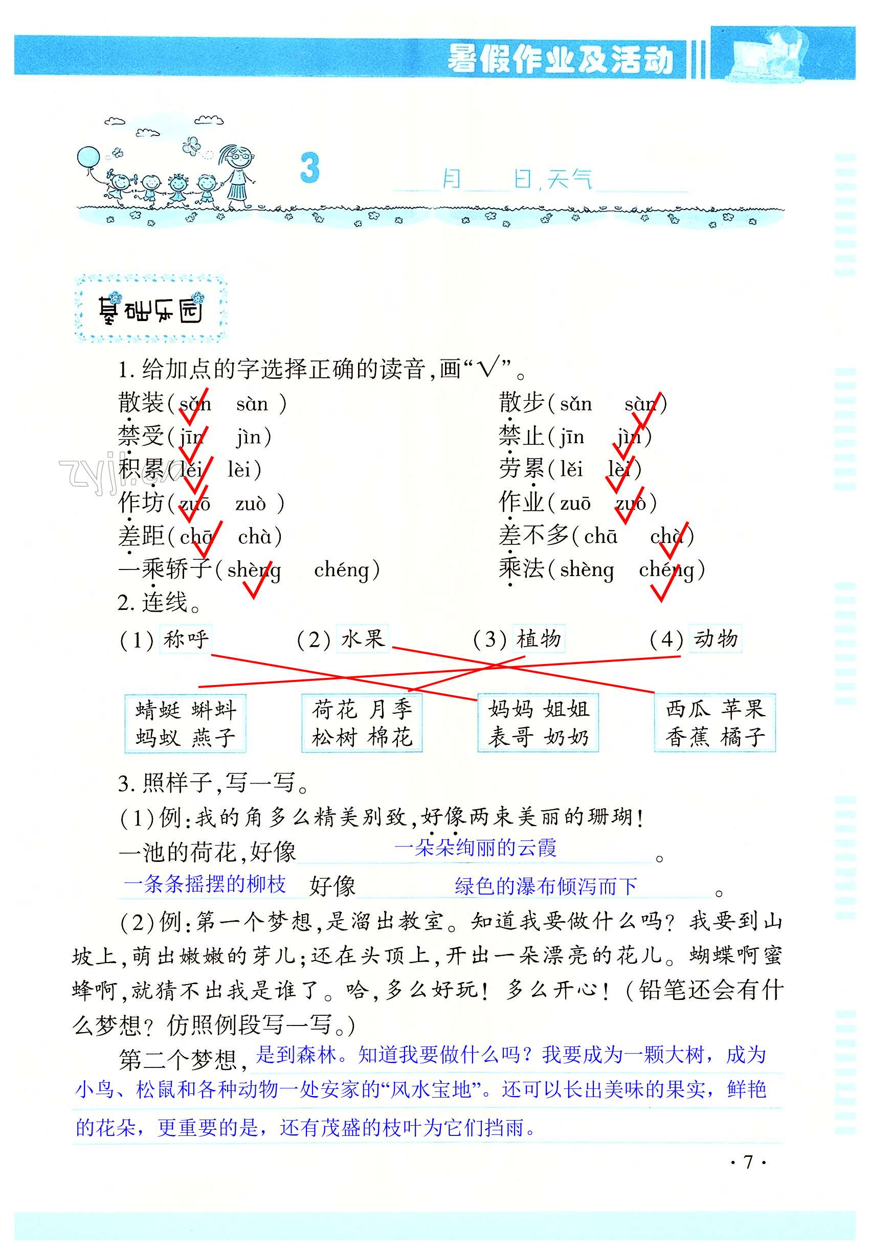 2022年暑假作业及活动三年级语文新疆文化出版社