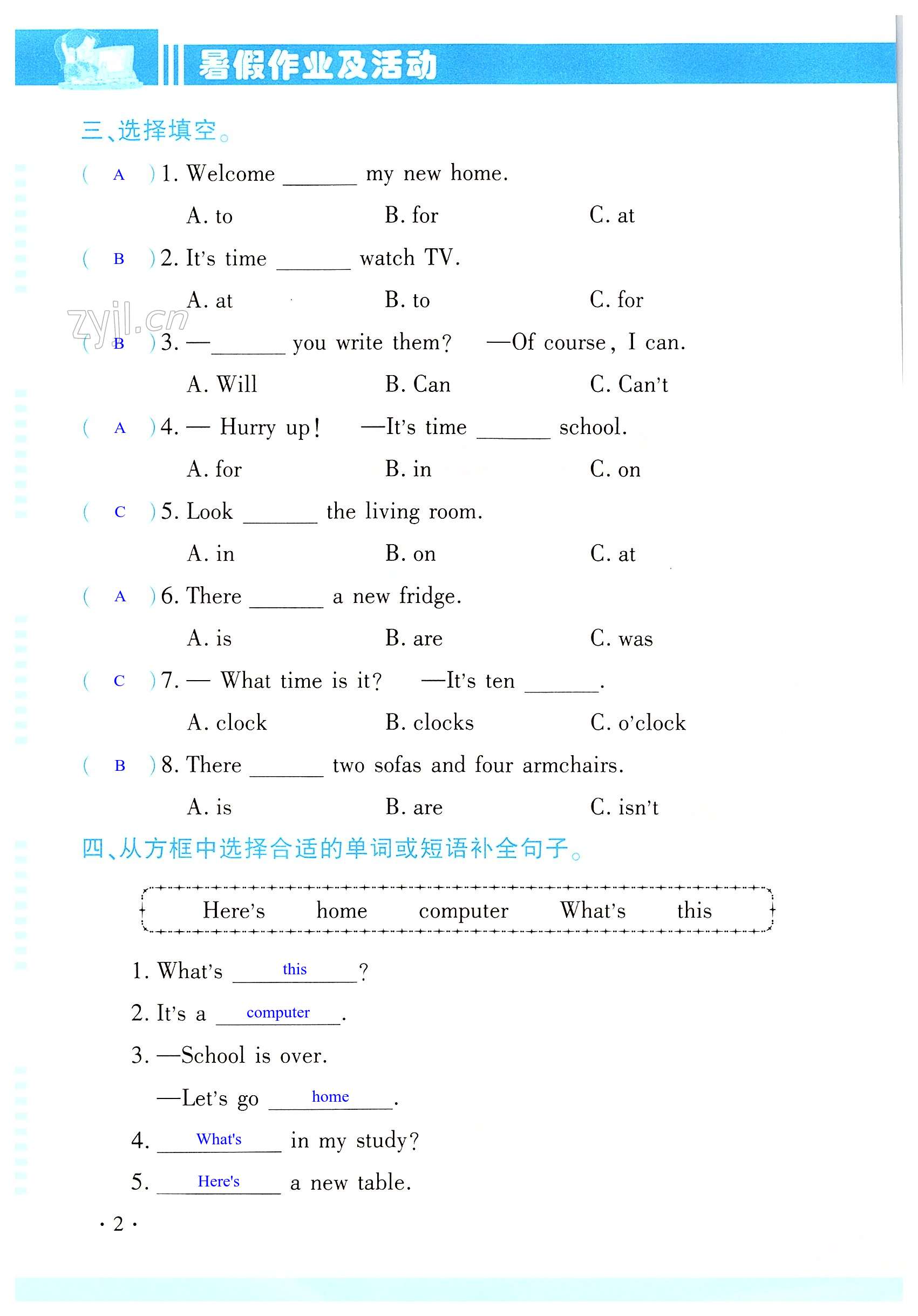 注:目前有些书本章节名称可能整理的还不是很完善,但都是按照顺序排列的,请同学们按照顺序仔细查找。练习册 2022年暑假作业及活动四年级英语新疆文化出版社 答案主要是用来给同学们做完题方便对答案用的,请勿直接抄袭。
