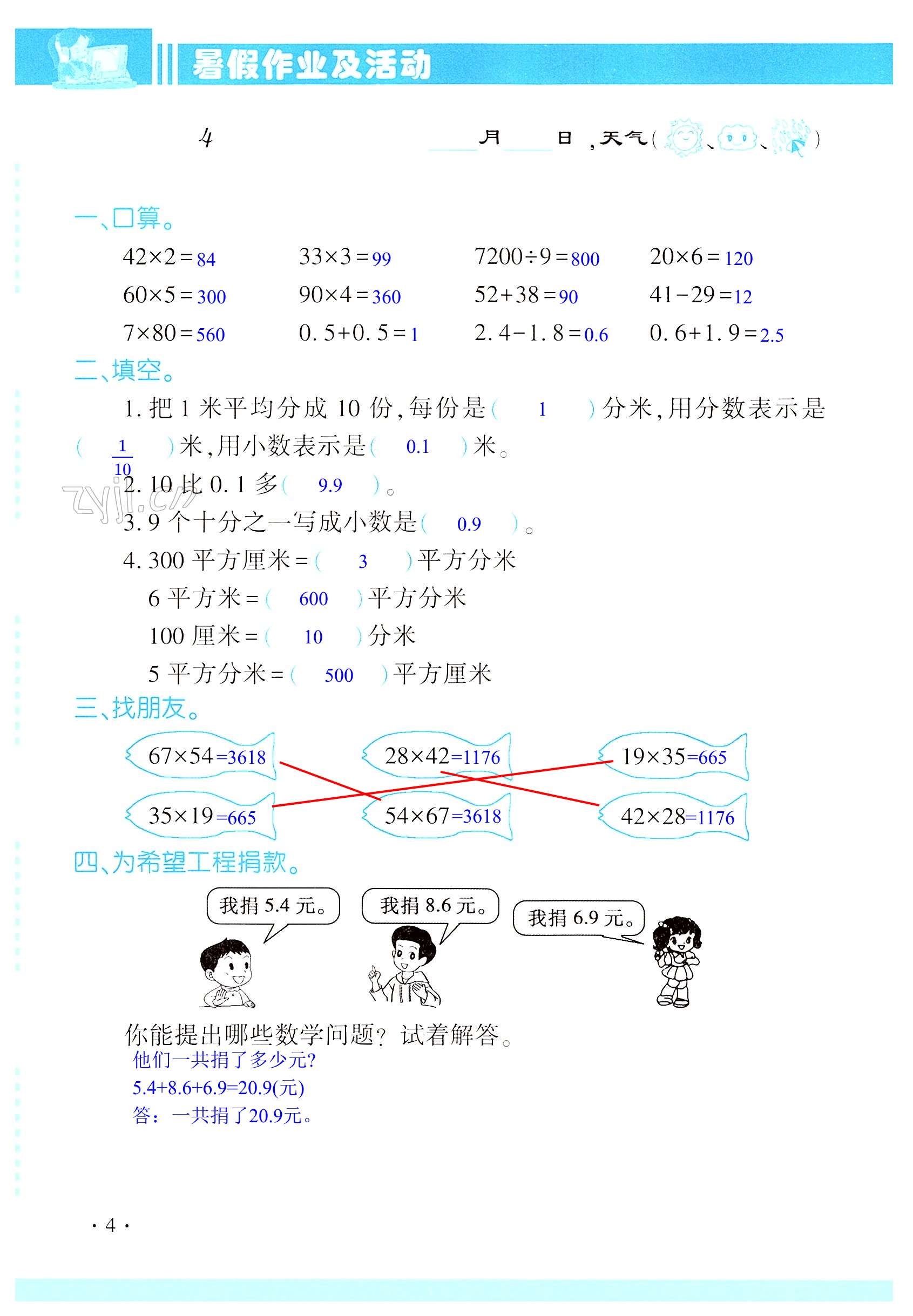 注:目前有些书本章节名称可能整理的还不是很完善,但都是按照顺序排列的,请同学们按照顺序仔细查找。练习册 2022年暑假作业及活动三年级数学新疆文化出版社 答案主要是用来给同学们做完题方便对答案用的,请勿直接抄袭。