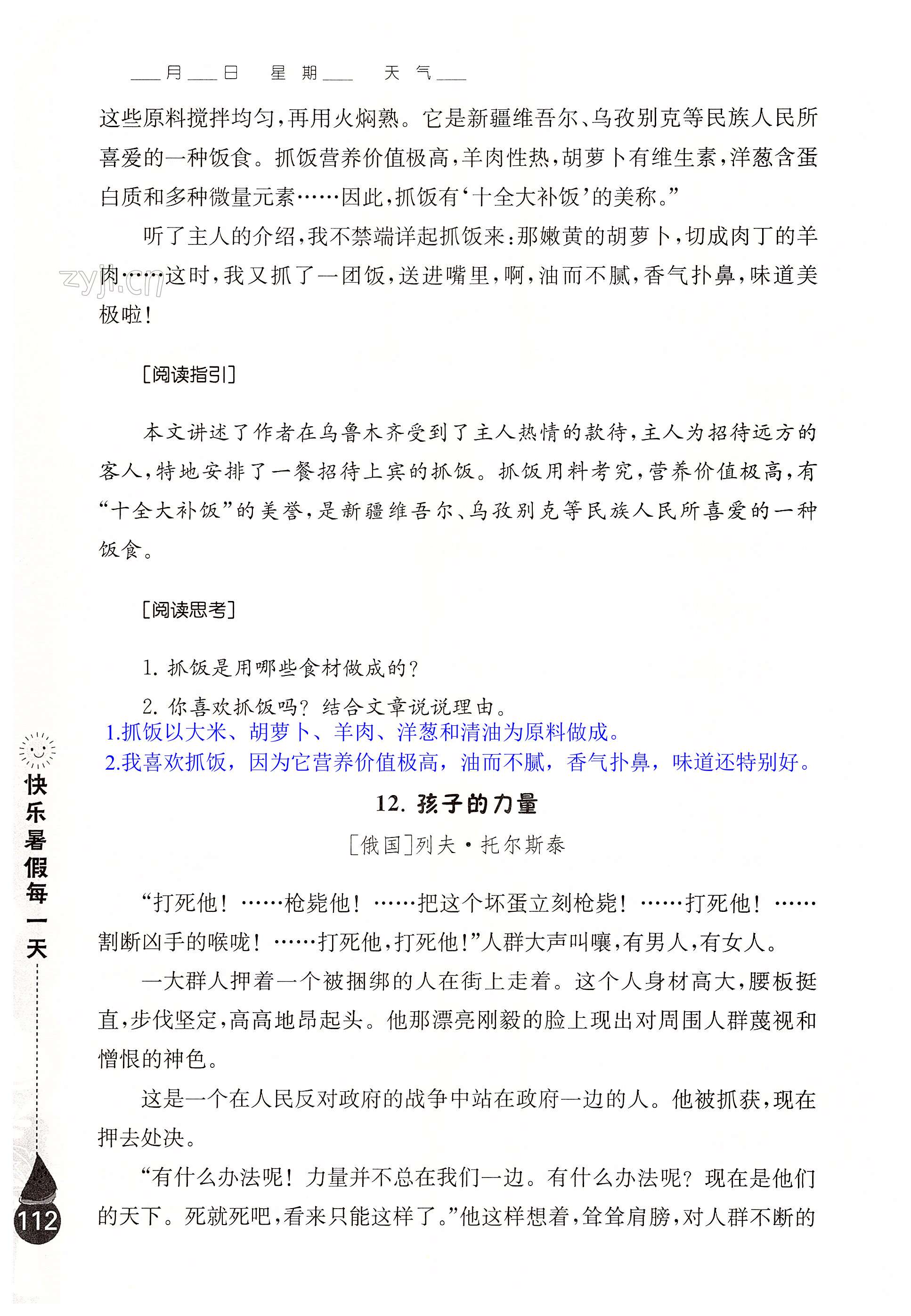 注:目前有些书本章节名称可能整理的还不是很完善,但都是按照顺序排列的,请同学们按照顺序仔细查找。练习册 2022年全国优秀作文选快乐暑假每一天三年级 答案主要是用来给同学们做完题方便对答案用的,请勿直接抄袭。