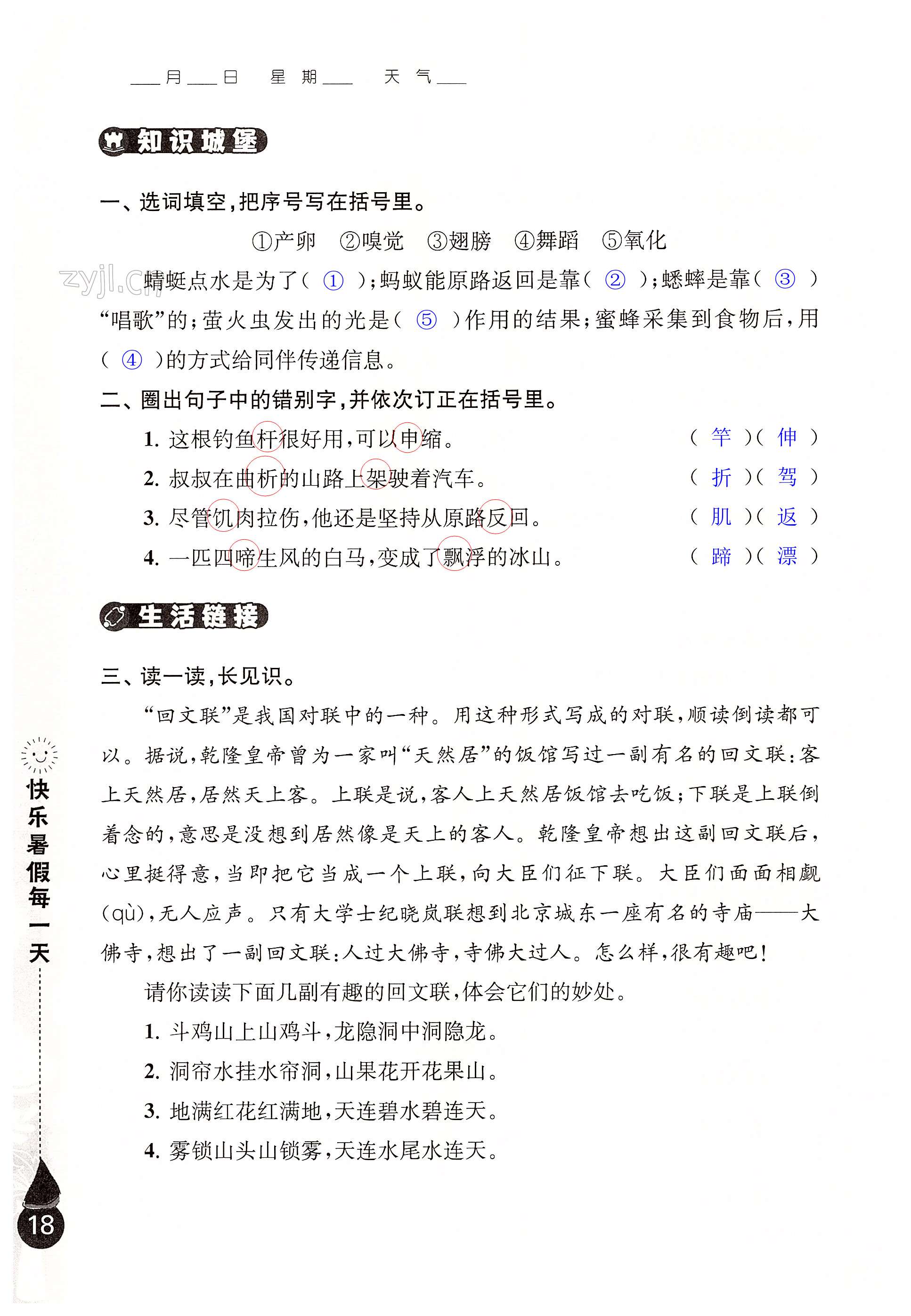 注:目前有些书本章节名称可能整理的还不是很完善,但都是按照顺序排列的,请同学们按照顺序仔细查找。练习册 2022年全国优秀作文选快乐暑假每一天三年级 答案主要是用来给同学们做完题方便对答案用的,请勿直接抄袭。