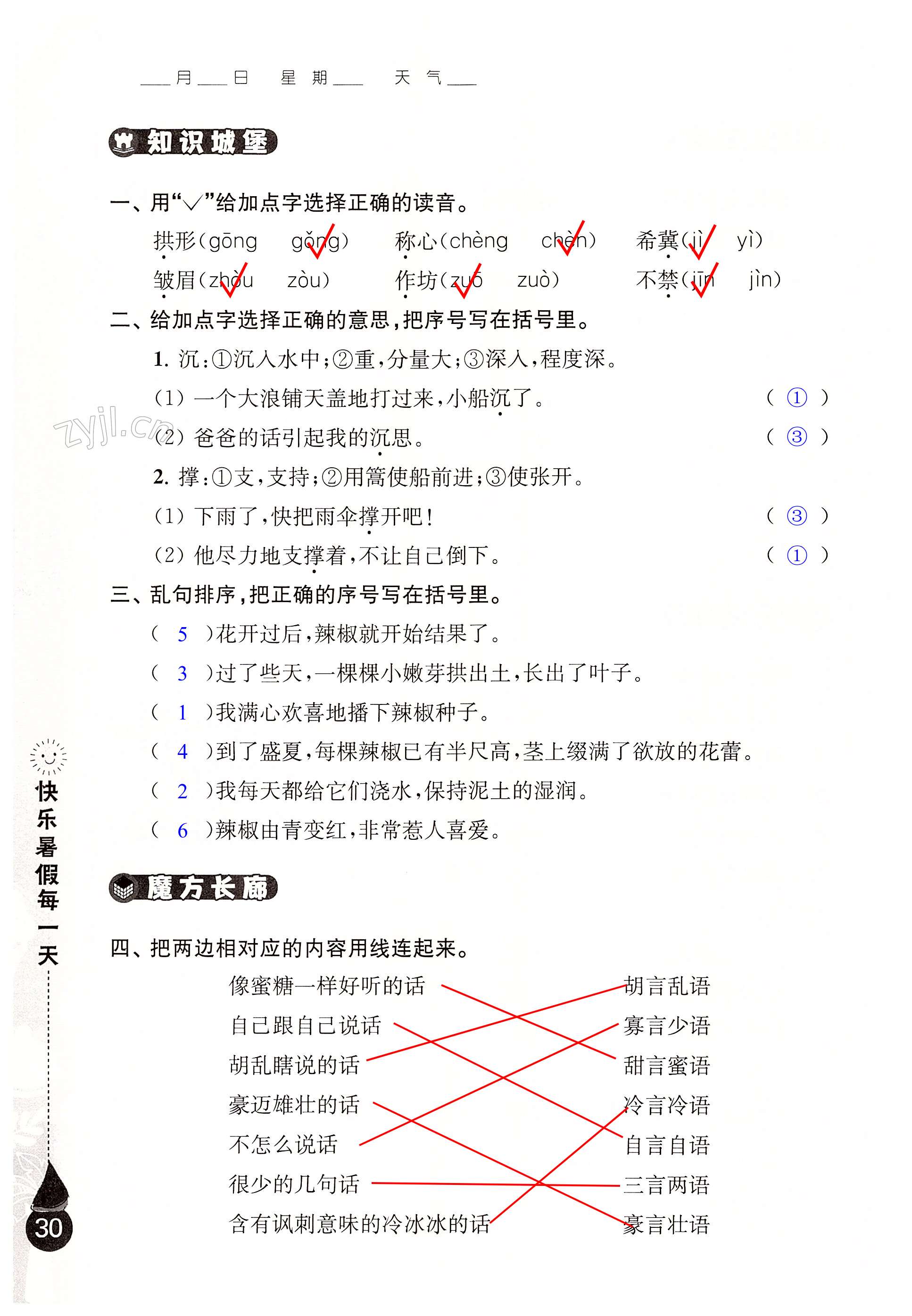 注:目前有些书本章节名称可能整理的还不是很完善,但都是按照顺序排列的,请同学们按照顺序仔细查找。练习册 2022年全国优秀作文选快乐暑假每一天三年级 答案主要是用来给同学们做完题方便对答案用的,请勿直接抄袭。