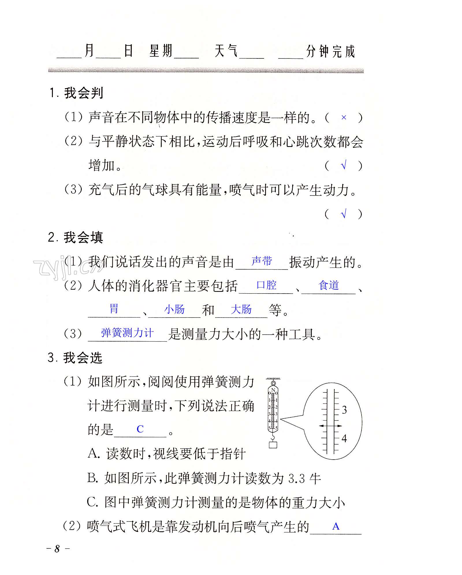 注:目前有些书本章节名称可能整理的还不是很完善,但都是按照顺序排列的,请同学们按照顺序仔细查找。练习册 2022年暑假学习乐园浙江科学技术出版社四年级科学 答案主要是用来给同学们做完题方便对答案用的,请勿直接抄袭。