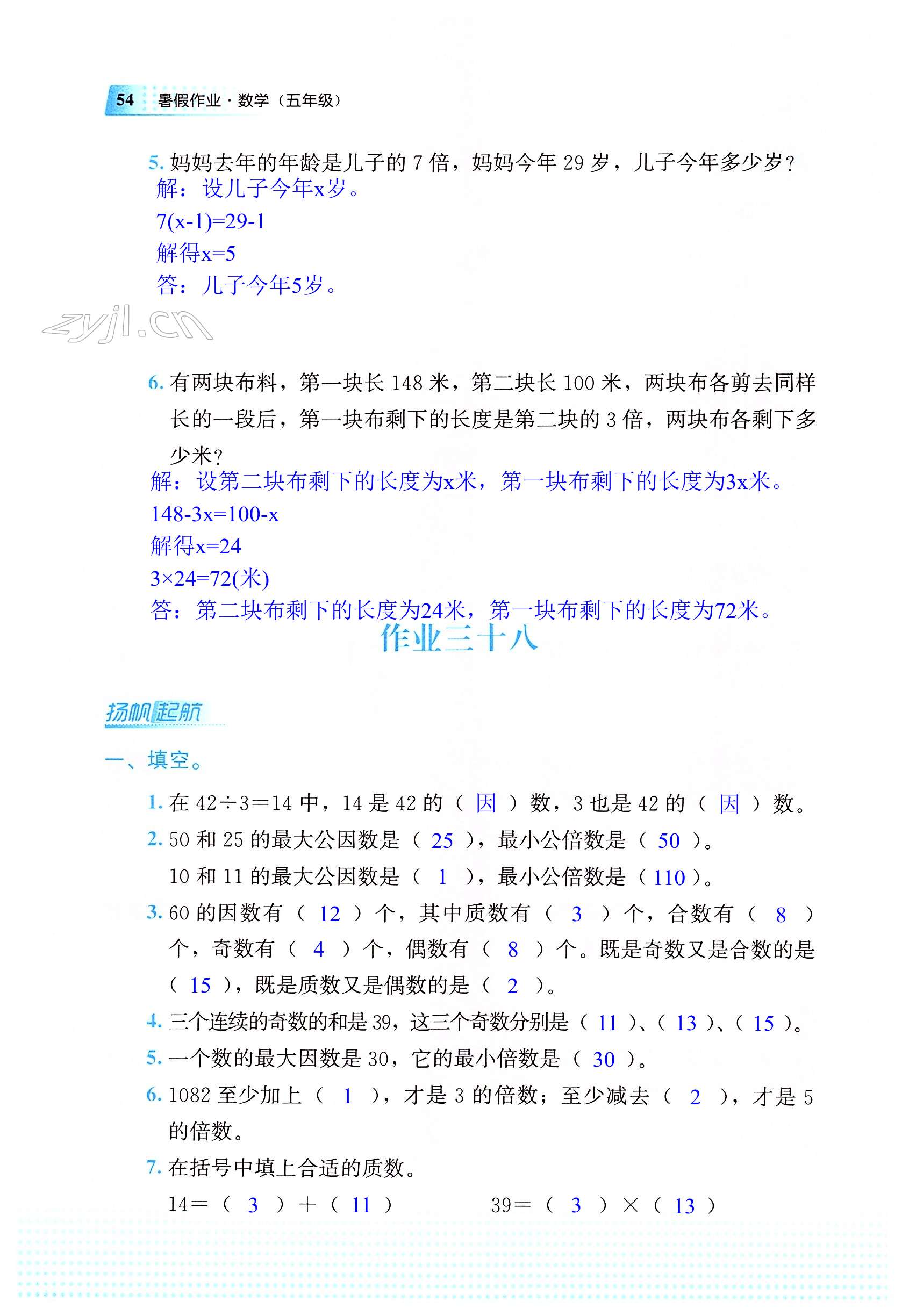 注:目前有些书本章节名称可能整理的还不是很完善,但都是按照顺序排列的,请同学们按照顺序仔细查找。练习册 2022年暑假作业教育科学出版社五年级数学广西专版 答案主要是用来给同学们做完题方便对答案用的,请勿直接抄袭。