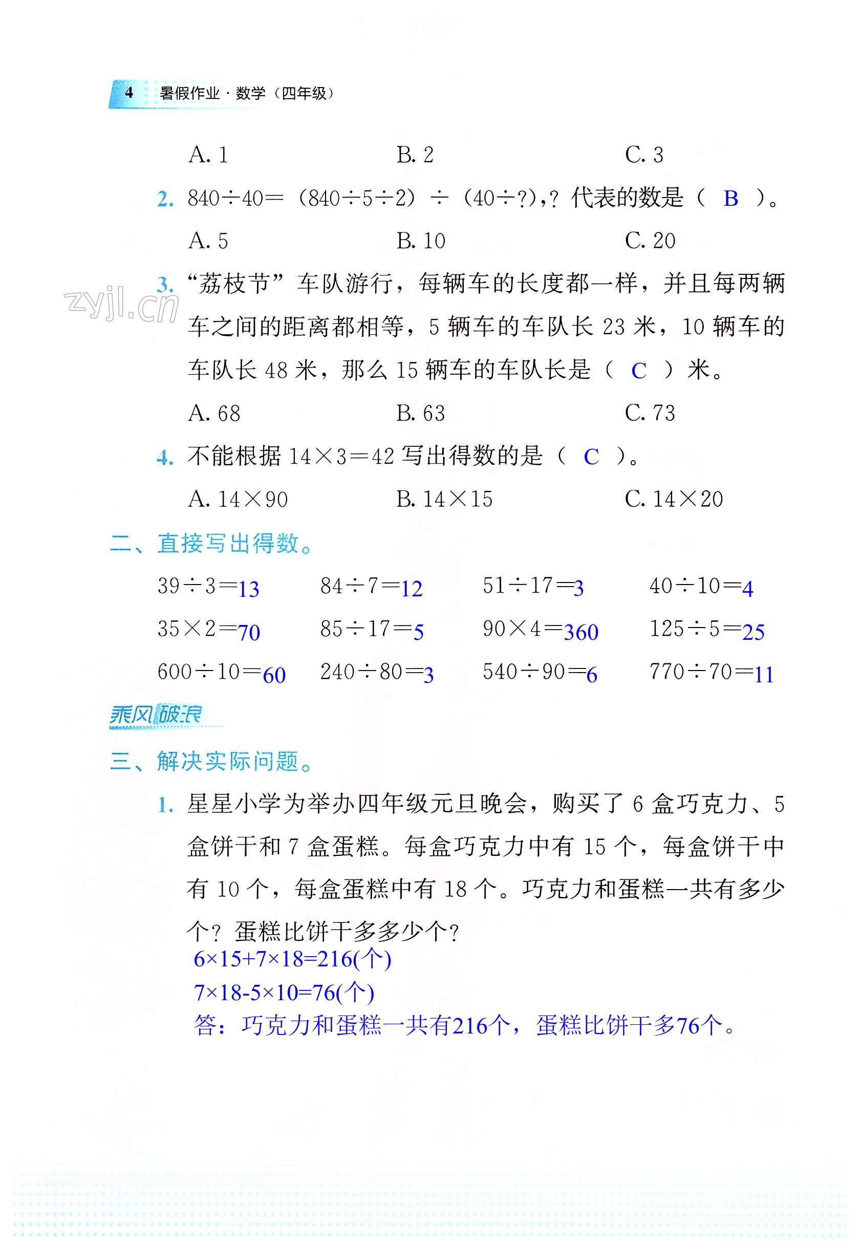 注:目前有些书本章节名称可能整理的还不是很完善,但都是按照顺序排列的,请同学们按照顺序仔细查找。练习册 2022年暑假作业教育科学出版社四年级数学广西专版 答案主要是用来给同学们做完题方便对答案用的,请勿直接抄袭。