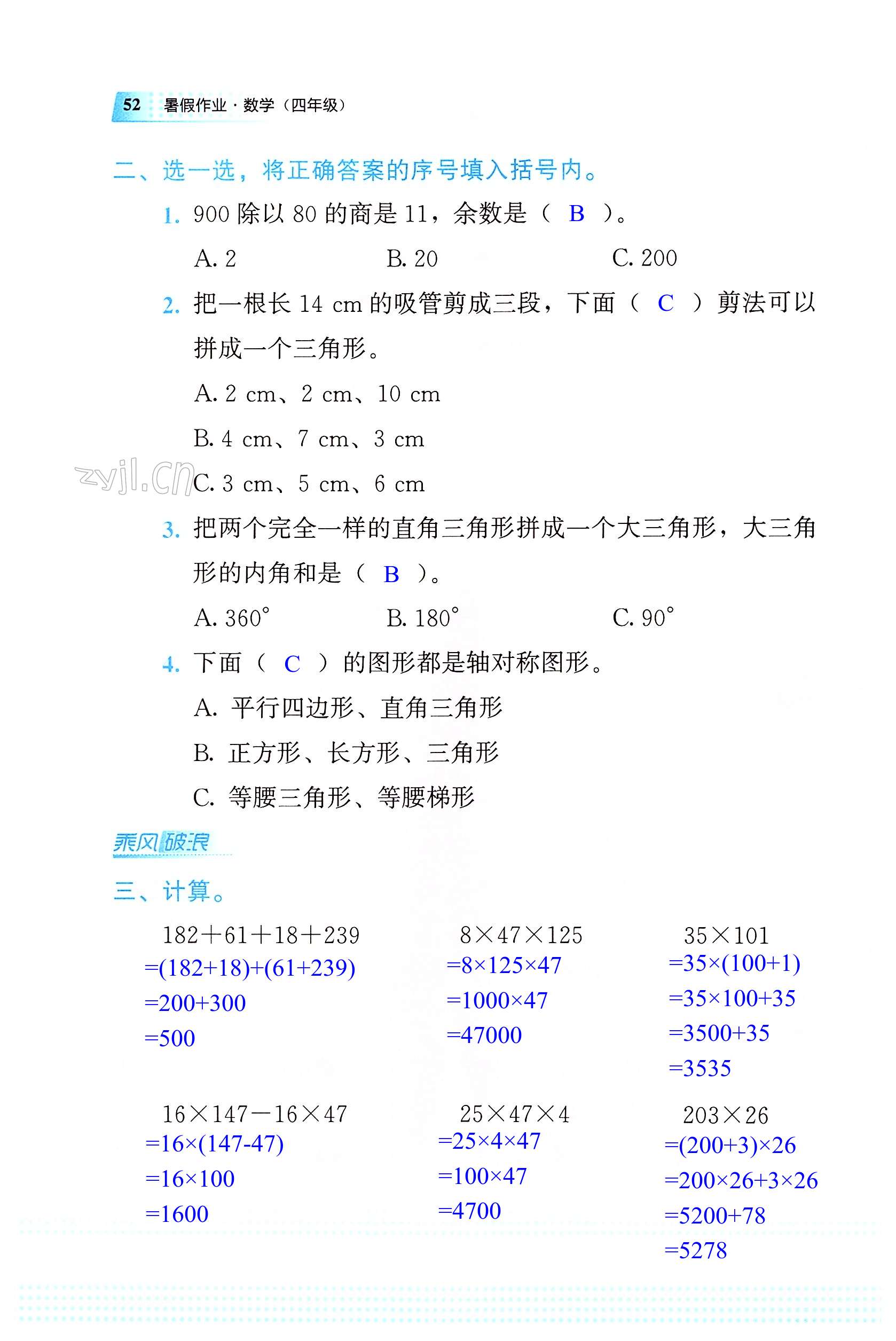 注:目前有些书本章节名称可能整理的还不是很完善,但都是按照顺序排列的,请同学们按照顺序仔细查找。练习册 2022年暑假作业教育科学出版社四年级数学广西专版 答案主要是用来给同学们做完题方便对答案用的,请勿直接抄袭。