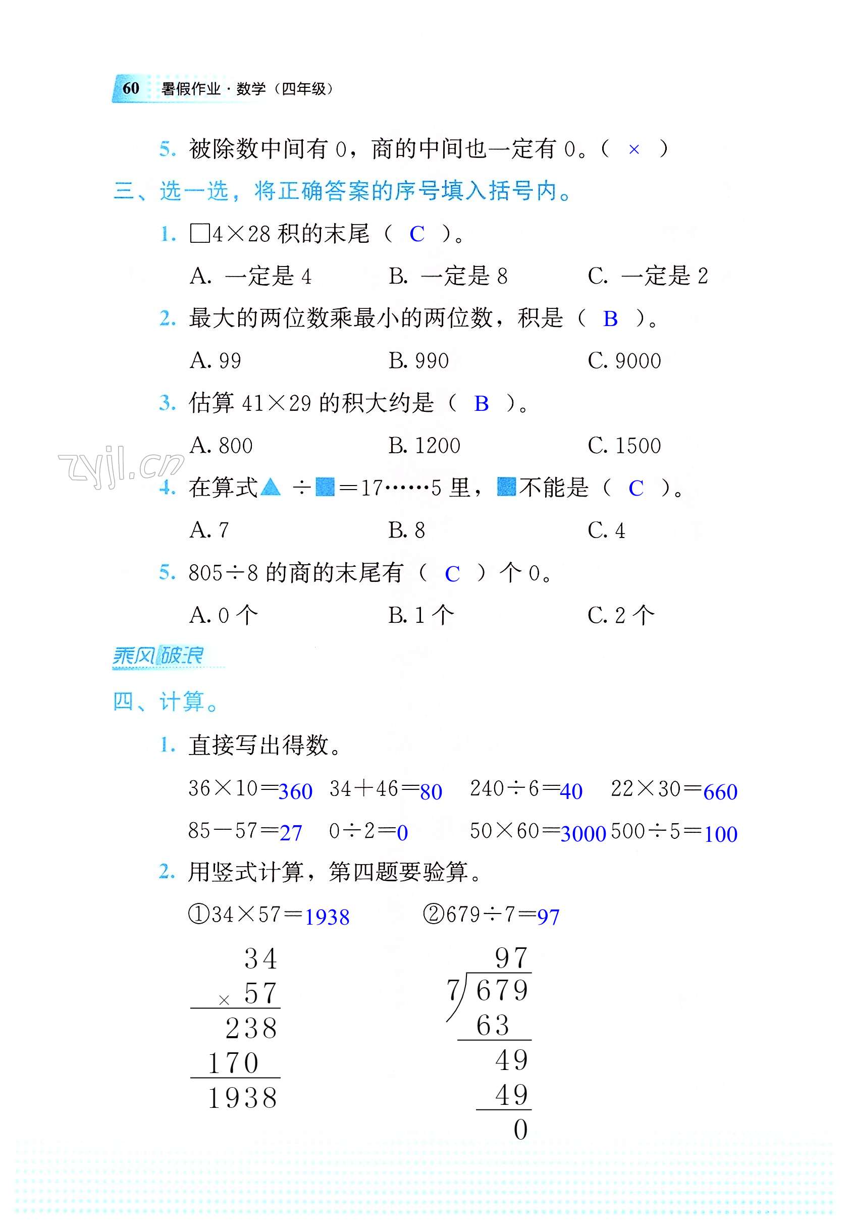 注:目前有些书本章节名称可能整理的还不是很完善,但都是按照顺序排列的,请同学们按照顺序仔细查找。练习册 2022年暑假作业教育科学出版社四年级数学广西专版 答案主要是用来给同学们做完题方便对答案用的,请勿直接抄袭。